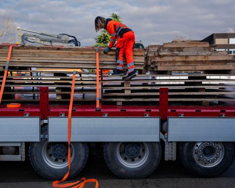 Chaque matin, aux aurores, Océane Minguez fait vrombir les 540 chevaux de son cinq essieux. Le camion a été préparé pour la tâche du jour et soigneusement inspecté. Cette passionnée de la conduite s’élance ensuite sur la route.