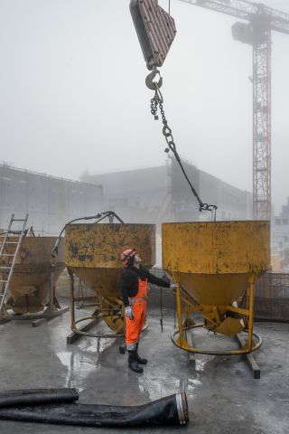 Sur le chantier de la Station d’épuration de Lausanne (STEP), une cinquantaine de travailleurs sont à pied d’œuvre. Les travaux d’agrandissements et de rénovation, devisés à 300 millions de francs, ont commencé en 2015. Pour l’entreprise Marti, le mandat se monte à 21 millions et court d’octobre 2022 à juin 2024 pour la construction de bassins de traitement, soit quelque 18'000 m3 de béton. «Au début du chantier, j'ai dû en fabriquer des quantités énormes pour les murs. Le chantier est technique, car nous avons six sortes de béton, donc six recettes», explique Paulo Morais. «Cette centrale peut faire entre 400 et 600m3 de béton par jour. Les constructions de la STEP sont en béton armé.» Les bassins de traitement des eaux doivent résister à la corrosion, à la carbonatation, et aux attaques sulfatiques. Autant de termes techniques qui désignent le processus de vieillissement du béton.