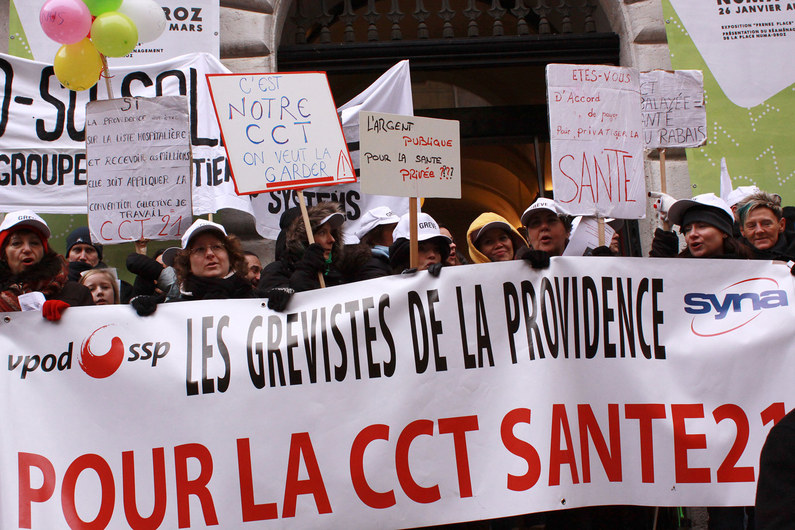 «Soit la Cour n’a rien compris à ce qu’est une grève, soit elle nie ce droit.» Pour Christian Dandrès, avocat des syndicalistes, ce nouvel arrêt a une couleur politique et s’inscrit dans un contexte de privatisation de la santé et de baisse des conditions de travail. Ici, une des manifestations des grévistes de la Providence à Neuchâtel, en janvier 2013.