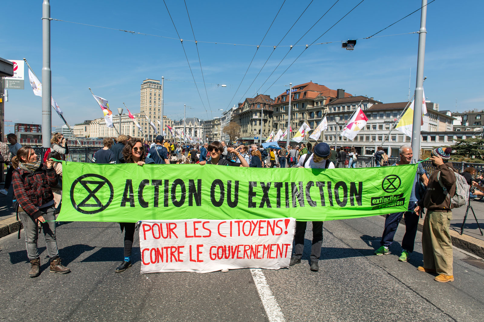 Jeudi 18 avril, sous l’égide du mouvement international Extinction Rebellion, environ 300 personnes ont bloqué le Grand-Pont à Lausanne, durant une heure.