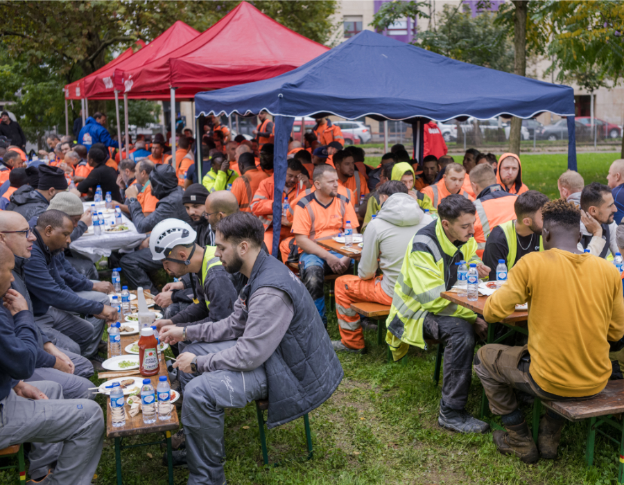 Le 17 octobre, Unia Genève a organisé une grande grillade le midi dans un parc aux Acacias, conviant plus de 150 travailleurs des chantiers du quartier du PAV. Malgré la pluie, les maçons ont répondu présents. José Sebastiao, responsable du secteur à Unia Genève, a rappelé les négociations salariales en cours et planté le contexte. «Rappelez-vous, en 2023, la Société suisse des entrepreneurs (SSE) voulait accorder des augmentations de salaire uniquement aux travailleurs dits très motivés et compétents. C’est inadmissible de s’adresser à vous comme ça!» Les maçons approuvent avec des huées. «Selon nous, tout le monde mérite une augmentation qui soit inscrite dans la convention et qui s’applique à tous.» Les syndicats réclament une hausse des salaires de 250 francs, alors que les employeurs proposent une augmentation générale de 0,5%, soit 30 francs en moyenne par mois. «Vous êtes d’accord avec cela?» «Non!», répondent les maçons attablés, en chœur. «C’est un scandale», reprend le responsable syndical. «C’est une humiliation et un affront de plus envers les travailleurs. Nous demandons à la SSE un peu de sérieux!»