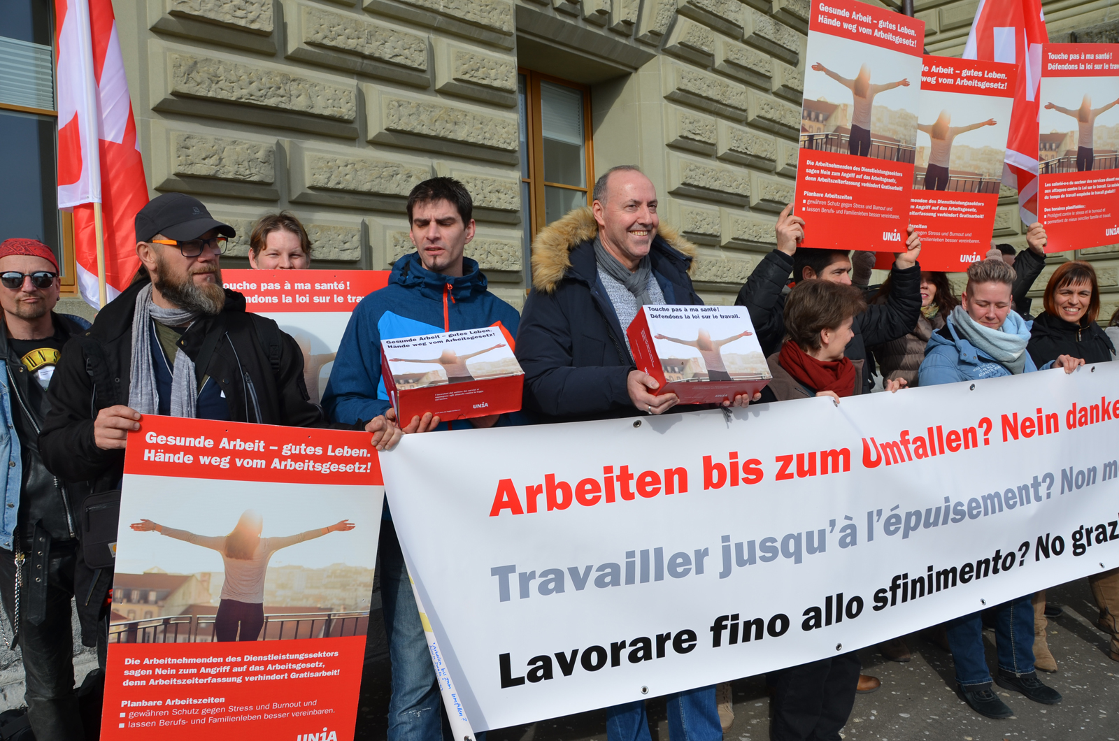 En mars 2018, Unia avait remis aux parlementaires 1280 cartes de protestation signées par des employés du secteur des services contre l’allégement de la Loi sur le travail.