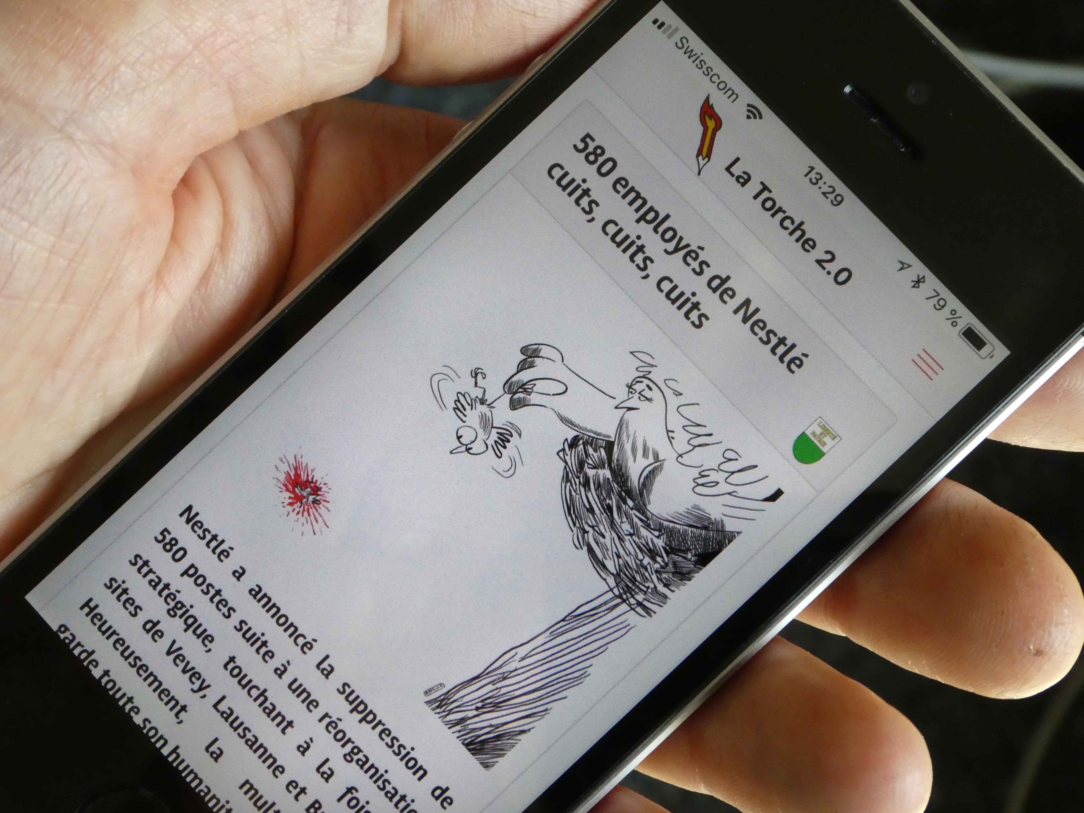 Depuis des temps immémoriaux, la satire est une arme. Une arme de résistance. Aujourd’hui encore, devant tant d’injustices et de barbarie, face au rouleau compresseur néolibéral, à l’indécence et à l’impunité des superriches, à la médiocrité et à la corruption de nos élus… rions un peu avec «La Torche 2.0». Lancé l’année dernière dans le canton du Jura, ce nouveau média a fait ce printemps des petits dans les autres cantons romands. Expliquons d’abord à nos lecteurs qui n’ont pas la chance d’être Jurassiens que le titre choisi signifie «baffe» en patois local et fait aussi référence à une illustre rubrique du Quotidien jurassien, «La torche d'Apollodore», disparue en 2000. Le satirique se décline sous la forme d’une app, soit une application à télécharger sur son smartphone ou sa tablette (à défaut, on peut aussi consulter le média sur le web: latorche.ch). Une fois abonné, on reçoit trois fois par semaine au moins une alerte push, c’est-à-dire une notification invitant à consulter un dessin inspiré par l’actualité de son canton et accompagné ou non d’un texte piquant. Des dessinateurs de presse réputés participent à ce premier média satirique numérique de proximité sous forme d'application, tels que Debuhme, Herrmann, Vincent L’Epée, Maret, Monta, Pigr, Pitch Comment, Sjöstedt ou Vincent, et d’autres moins connus, qui gagnent justement à le devenir.