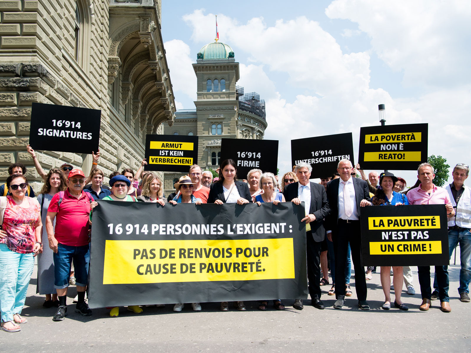 Afin d’appuyer son initiative, l’Alliance «La pauvreté n’est pas un crime», dont Unia est partie prenante, a lancé une pétition du même nom. Forte de 16914 signatures, elle a été remise le 8 juin aux Chambres fédérales.