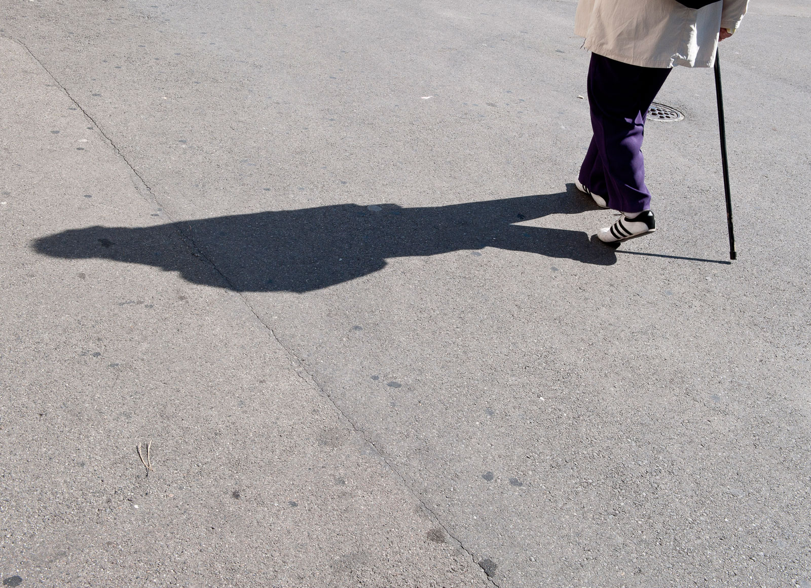 Personne âgée marchant dans la rue.