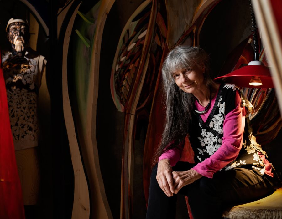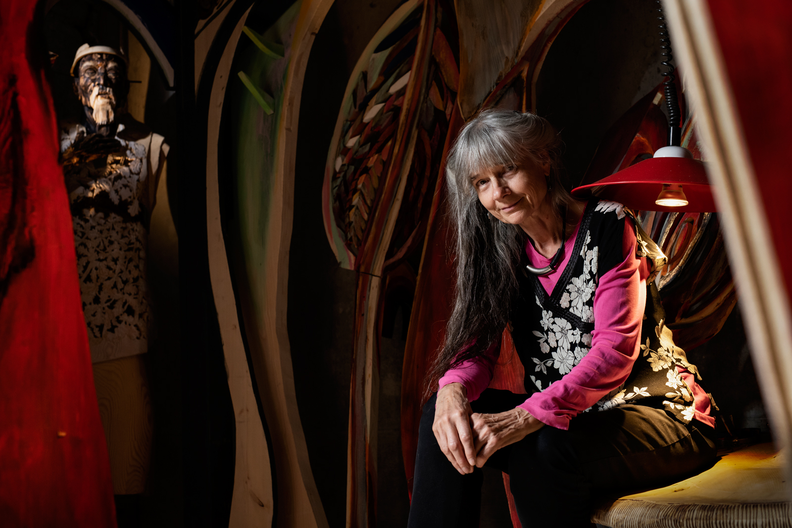 «La création est parfois juste du labeur. Mais elle peut aussi devenir un temps privilégié où, dans le silence intérieur, toutes antennes dehors, on devient réceptacle, canal à l’expression de l’intuition. Je me sens alors comme un outil. Des choses me parviennent que je redonne à voir», affirme la passionnée qui ne s’arrête jamais ou presque. Peinture, sculpture, jardinage, méditation, garde de ses petits-enfants... Son temps est aussi rempli que le chalet qu’elle partage avec son époux – son «efficace assistant technique» rencontré il y a une quarantaine d’années alors qu’elle faisait de l’autostop – et nombre de ses personnages. Un lieu labyrinthique aux allures de conte, tout en coins, recoins, mezzanines, cachettes, habillé des meubles de sa fabrication et accueillant deux chats admirés pour leur indépendance. Une liberté qui caractérise aussi la talentueuse et audacieuse plasticienne captant dans ses œuvres, magicienne à sa manière, de lumineuses étincelles de vie. D’ici et de mondes parallèles.