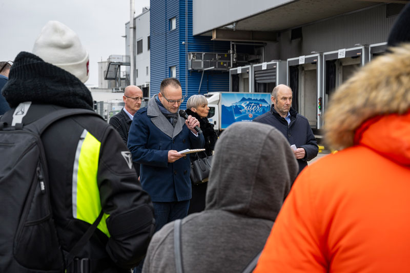 Sur le site d’Ecublens, la présidente d’Unia, Vania Alleva, encourage les grévistes: «C’est important de rester unis. Les résultats ne tombent pas du ciel. Votre courage et votre détermination sont exemplaires.»