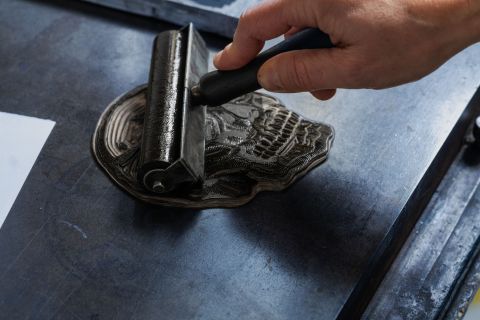 Gaëlle Garrocq nous accueille dans son petit atelier, au cœur de Vevey, collé à celui de reliure artisanale où elle a travaillé pendant dix ans en tant que graveuse. Le parcours de cette Française de 45 ans est riche, comme si chaque expérience l’avait menée vers un nouveau chapitre de sa vie, faisant d’elle une artiste avec de nombreuses cordes à son arc. Illustratrice, graveuse, linograveuse, tatoueuse, Gaëlle Garrocq touche un peu à tout, mais aujourd’hui, son activité principale est l’enseignement de la linogravure à travers des ateliers.