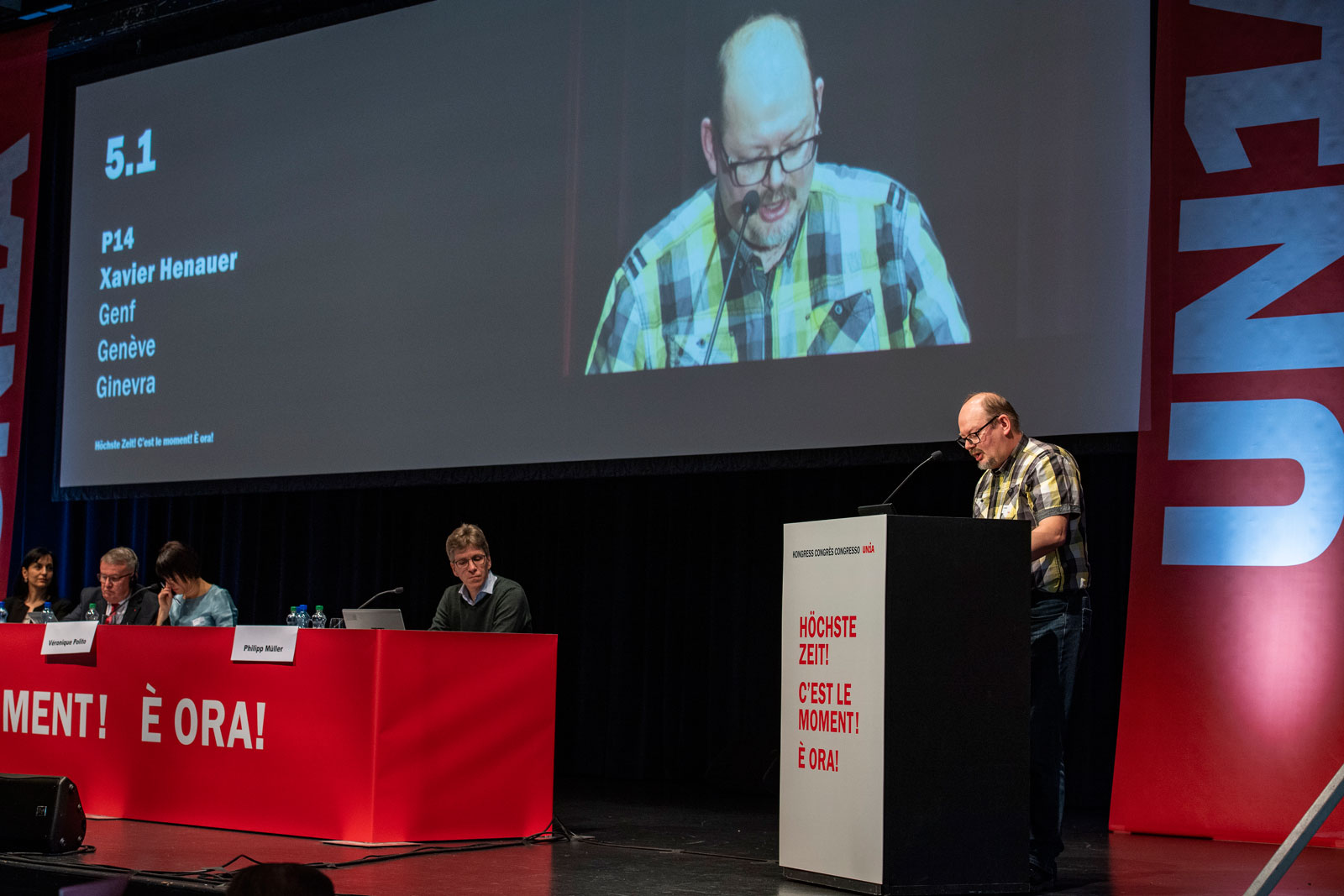 Président d’Unia Genève, Xavier Henauer avait défendu, avec succès, la proposition de lancer une initiative pour une vraie protection contre les licenciements à la tribune du Congrès d’Unia, en mars de l’année dernière (photo), puis à celle du Congrès de l’USS en novembre.