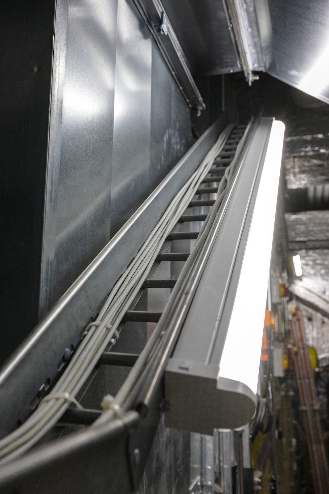 Miguel Viveiros aime le travail bien fait et «joli» aussi. Dans la salle des machines, en sous-sol, il indique le cheminement des câbles bien alignés, la disposition des luminaires, les descentes et les chutes des fils installées pour ne gêner personne... «Regardez, le collègue a mis une colson (attache, ndlr) ici. Ça crée une belle forme, comme une pieuvre. On laisse les boucles, on arrête le tube et on le reprend ici… C’est de l’art!» En bon pédagogue, Miguel Viveiros ouvre les yeux des profanes sur la finesse et la beauté du labyrinthe. Puis, il indique la pompe à chaleur, là l’onduleur et ici l’exutoire de fumée… Autant d’éléments relégués dans le sous-sol, cachés, qui ont une répercussion sur toutes les personnes présentes dans les bureaux du bâtiment.
