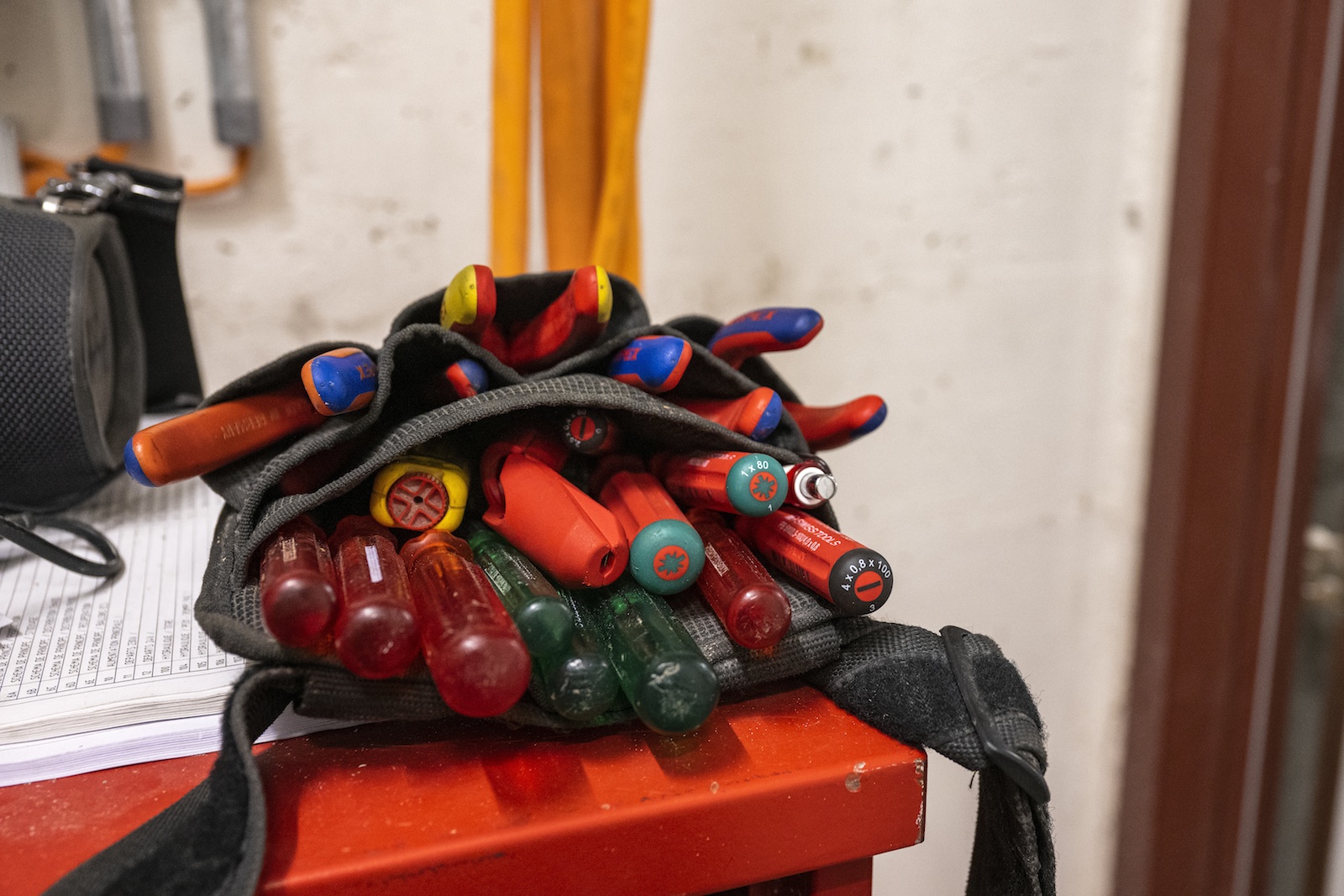 En chef de chantier, Miguel Viveiros est le garant des délais. «Le gardien du temps comme dans Fort Boyard», rigole-t-il. Un de ces prochains samedis, pour ne pas déranger la centaine de personnes qui travaillent dans les bureaux de cet immeuble, lui et son équipe devront changer le tableau électrique principal. «On n’aura donc pas de courant. C’est ça le paradoxe du métier, on amène de l’électricité, mais on travaille sans. Tous nos appareils sont sur batteries», sourit-il, malgré le stress sous-jacent.