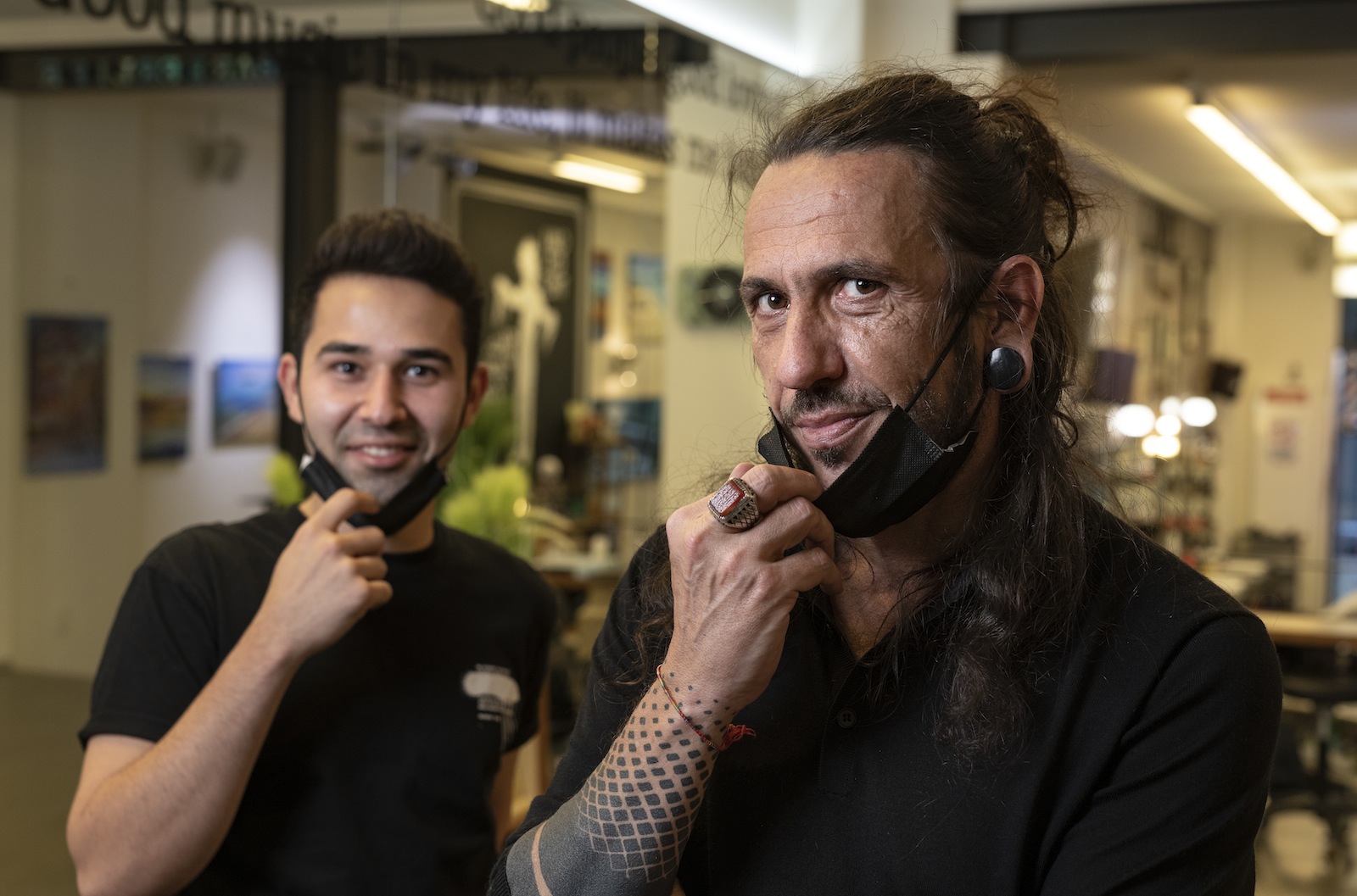 «Amir est le 3e apprenti que je forme, et je n’avais jamais engagé de réfugiés auparavant. Les deux premières fois, c’était des Suisses, l’une était la filleule de mon associé, la 2e devait refaire son apprentissage, car ça n’avait pas été avec son ancien patron. J’ai un ami qui travaille avec l’EVAM et, un jour, il m’a dit: “J’ai un petit jeune qui aimerait faire un stage, est-ce que ça te dit qu’il vienne chez toi?” On s’est rencontrés comme ça. Il a fait trois jours, et j’ai directement décidé de l’engager. J’avais déjà eu des échos positifs, car il avait effectué un stage dans un autre salon où je connais tout le monde, une Afghane y travaille, et elle m’avait dit qu’Amir était “un bon élément”.