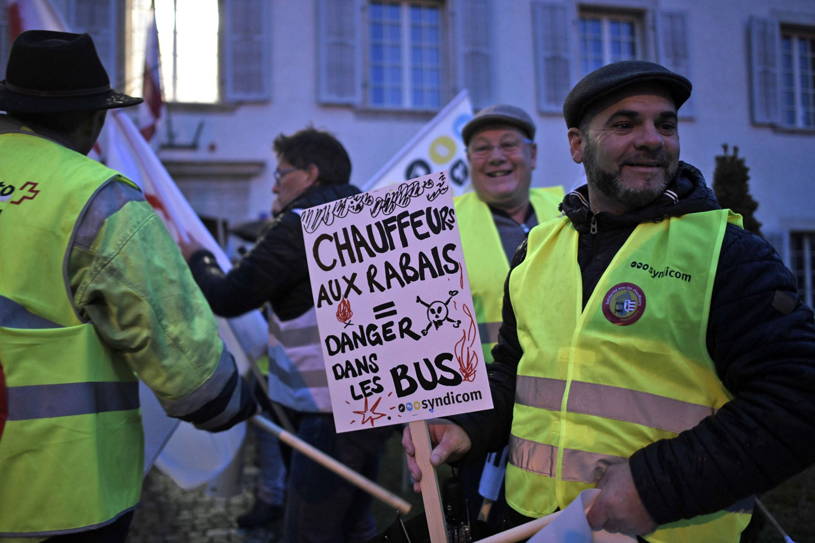 Quelque 150 chauffeurs et sympathisants ont manifesté mercredi dernier à Delémont devant le Parlement jurassien (photo). Ils sont en colère contre le gouvernement cantonal et la manière dont il a mis au concours le réseau de bus régional. Pour mémoire, dans l’idée d’économiser près d’un million de francs par an, l’exécutif jurassien est prêt à céder l’exploitation des 38 lignes régionales, urbaines et nocturnes, aujourd’hui assurée par CarPostal et, dans une moindre mesure, par les Chemins de fer du Jura, au soumissionnaire suisse ou étranger le meilleur marché. A cette fin, il a renoncé à émettre des critères contraignants concernant la reprise du personnel, le maintien des conditions de travail et d’embauche, ainsi que l’obligation de souscrire à une convention collective. Les conducteurs et leurs syndicats, Syndicom et le SEV, craignent que les sociétés qui décrocheront les lots ne s’en tiennent qu’au salaire minimum usuel de la branche de 58300 francs par an, soit un montant d’environ 25% inférieur à la rémunération moyenne des chauffeurs dans le Jura.