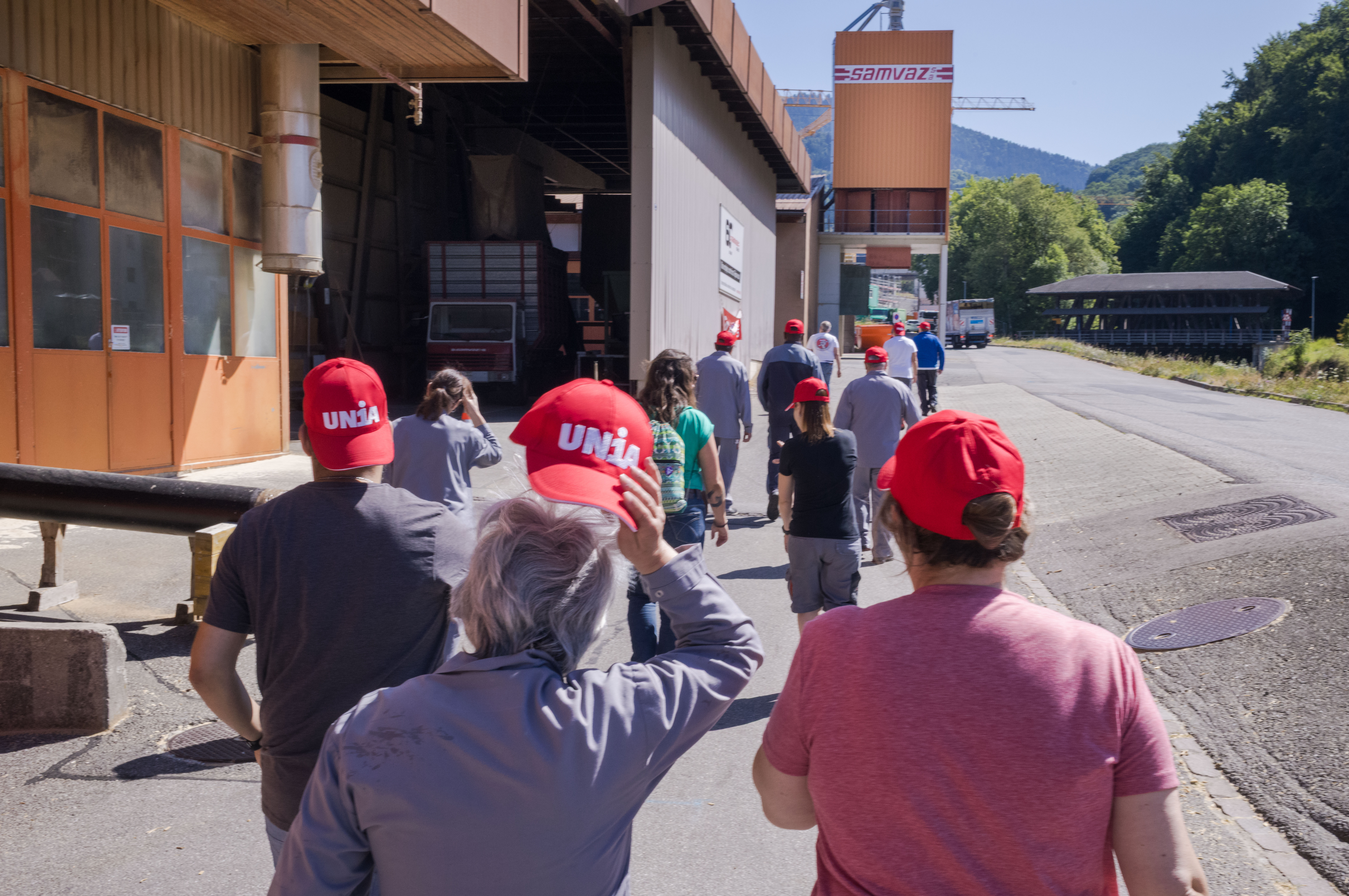 La grève entamée vendredi par le personnel du département bois de Samvaz, à Châtel-Saint-Denis, s’est poursuivie ce lundi 14 juillet. Rappelons que la trentaine de travailleuses et de travailleurs licenciés en raison de la fermeture de leur secteur se battent, avec le soutien d’Unia, pour un meilleur plan social. Tôt ce matin du 14 juillet, ils ont mené une action de tractage auprès de leurs collègues actifs dans le domaine du métal pour les inviter, précise le syndicat dans un communiqué de presse, «à ne pas rester spectateurs, mais à exprimer leur solidarité, leurs inquiétudes et leur position face à la situation». «Les grévistes leur ont demandé d’être à leur côté», indique Yannick Ferrari, membre de la direction d’Unia Fribourg alors que, dénonce le syndicat, l’entreprise aurait sciemment orienté la communication, divisant les travailleurs des deux départements. «Après chaque action des grévistes, des réunions ont été organisées, mais ces rencontres ont servi à imposer la vision unilatérale de la direction, sans permettre un véritable échange.