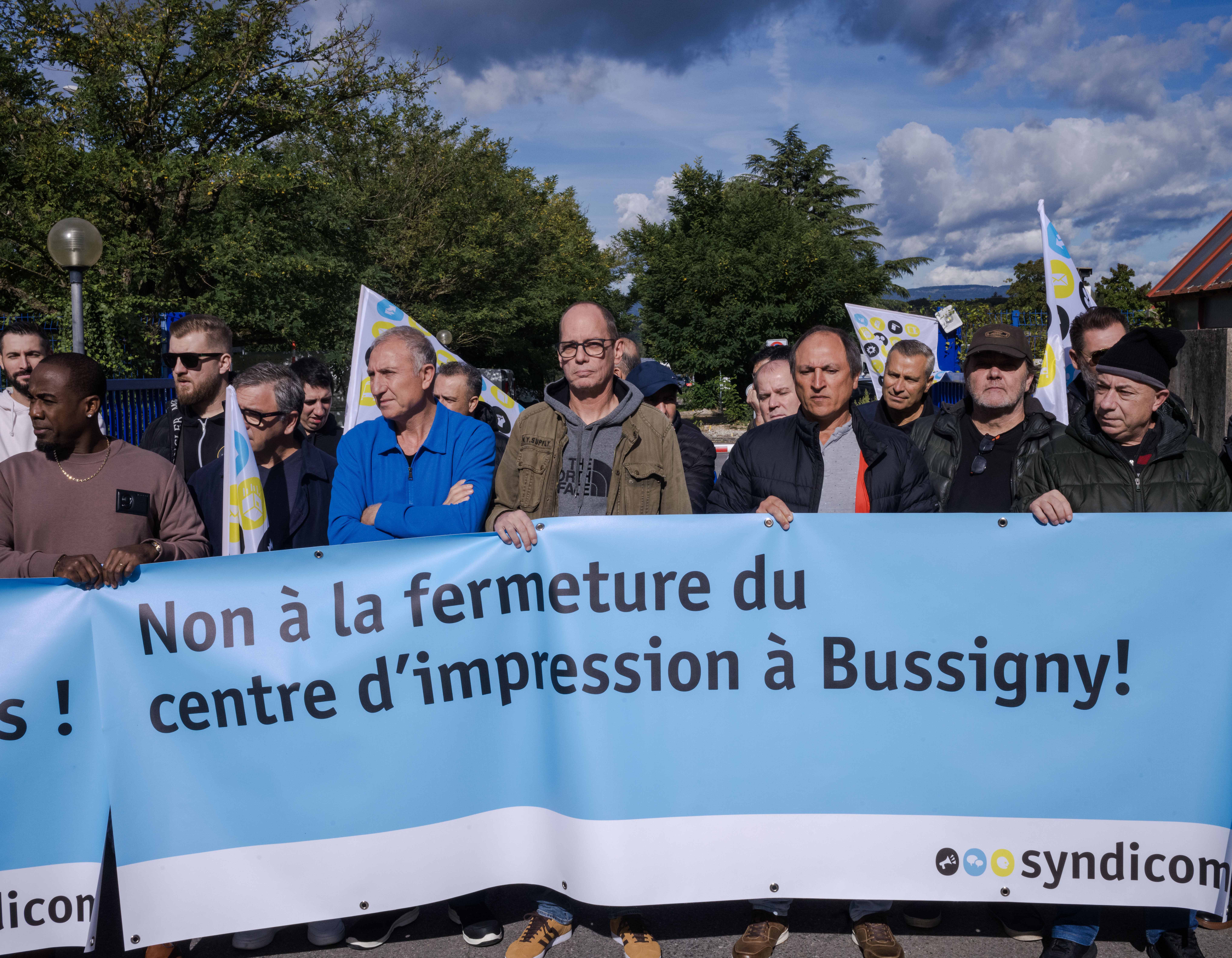 Une centaine de personnes a participé à la manifestation devant le centre d'impression de Bussigny, censé mettre la clé sous la porte en mars prochain.
