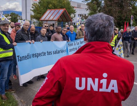 Ce lundi 30 septembre, en fin de matinée, une centaine de personnes sont donc venues à Bussigny pour dire toute l’absurdité de fermer la plus grande rotative de Suisse romande, où sont imprimés les journaux de Tamedia, dont 24 Heures, la Tribune de Genève et le Matin Dimanche, mais aussi ceux de clients externes, dont Le Temps. Au terme d’un processus de consultation mené à bride abattue – à la base, la direction de Tamedia n’avait laissé que deux semaines pour cela, avant de prolonger légèrement le délai – le personnel du CIL, soutenu par Syndicom, a soumis toute une série de propositions pour perpétuer l’activité du site. En vain. Elles ont été balayées et la fermeture confirmée.