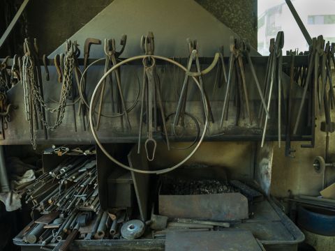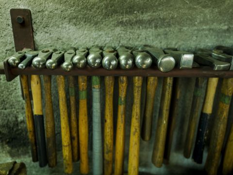 A cette époque, Pierre Turrian réalise des chaudrons d’une capacité allant d’une quinzaine de litres à 900. Les plus gros ne pèsent pas moins de 150 kilos et nécessitent quinze jours de travail. Les prix varient en fonction de la taille, oscillant entre quelques centaines de francs à plusieurs milliers. Si le processus de fabrication se résume à quelques étapes, il nécessite néanmoins un réel savoir-faire. «Les qualités requises? Faire montre d’une tronche de cochon pour marteler de la sorte, sept à huit heures par jour, plaisante l’artisan avant de poursuivre, plus sérieusement: «Il faut avoir l’œil pour les proportions et l’élégance mais aussi de la logique, bénéficier d’une bonne condition physique et d’une volonté de fer.» Concrètement, en bref, l’artisan choisit d’abord la feuille de cuivre dont l’épaisseur variera en fonction de la taille du chaudron. Il forme alors un cylindre rappondu «en queue d’aigle» qu’il cuit à une température oscillant entre 750 et 800 degrés avant de le laisser refroidir. Les petits chaudrons sont soumis à la chaleur des flammes, les gros chauffés au gaz. L’opération se répète huit à neuf fois, entrecoupée d’innombrables coups de marteau donnant corps au récipient. L’atelier recèle d’ailleurs toute une gamme de maillets choisis en fonction de la progression de l’ouvrage. «J’ai eu de la chance, je n’ai jamais souffert de tendinite ni de bursite. J’ai seulement dû être opéré en 1995 des tunnels carpiens», raconte le septuagénaire à la robuste stature, poigne et bras costauds encadrant un tablier de cuir. Cet ancien lutteur et entraîneur de la discipline note encore que, dans son métier, «il faut apprendre à transpirer et à souffrir». Une activité qui présente aussi l’inconvénient d’être très bruyante et salissante. «Mais il y a un plaisir immense à créer à partir d’une simple feuille plate un produit fini», temporise l’artisan.