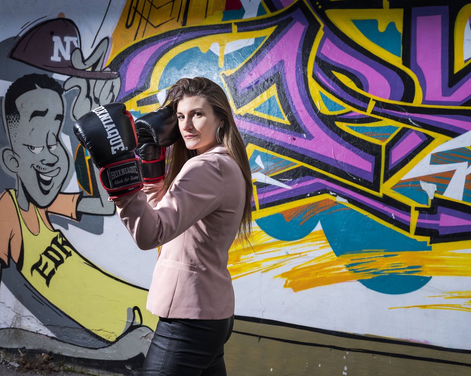 Si, durant cette période, Ornella Domini a dû mettre sa carrière de boxeuse en veilleuse, elle n’a pas hésité une seconde à la reprendre en quittant son dernier travail. «Je suis une sportive dans l’âme. L’activité physique fait partie intégrante de mon mode de vie et de ma philosophie.» Et son palmarès bien fourni le prouve. Sa licence amateure passée en 2008, la jeune femme remporte trois fois la médaille d’or romande de boxe. Puis, en 2009 et 2012, elle gagne les championnats suisses en amateur. Et devient alors professionnelle en 2013. «J’ai mené six combats la première année où je suis passée en pro» s’exclame-t-elle, auréolée de ses cheveux blonds. Sa dernière compétition, le 7 mars 2020, lui a permis de conserver pour la quatrième fois, mais pas d’affilée au niveau des années, son titre européen dans la catégorie des poids welters (moins de 66 kg). Et pourtant rien ne laissait présager qu’Ornella Domini parviendrait au sommet de son art. «Je faisais du foot en équipe féminine quand j’étais plus jeune. J’ai commencé la boxe parce que je cherchais un sport individuel qui me permette d’avoir plus confiance en moi.» Et d’ajouter en souriant: «Contrairement à ce qu’on pourrait penser, la boxe ne m’a pas détruite, elle m’a construite.» Son plus beau combat? «En 2018, contre Ewa Piątkowska pour le titre mondial. La rencontre se déroulait en Pologne devant plus de 8000 spectateurs! J’ai perdu mais j’étais fière de ma performance.» Elle précise l’importance de son coach dans ces moments. «J’aurais certainement arrêté sans lui. Il me suit depuis le début et notre relation est très particulière. Il m’a vue dans les pires comme dans les meilleurs moments. Il me connaît mieux que personne.» Dans un monde souvent masculin, la boxeuse explique qu’elle a dû faire sa place. «J’ai développé un humour très rentre-dedans pour casser tout de suite l’aspect de séduction. Le fait de cohabiter avec des hommes m’a permis d’acquérir un caractère bien trempé!» Désireuse de transmettre son savoir et la situation sanitaire la dissuadant de continuer, Ornella Domini aimerait aujourd’hui devenir entraîneure de boxe. «Je souhaite à tout le monde d’avoir une passion aussi forte que la mienne.»