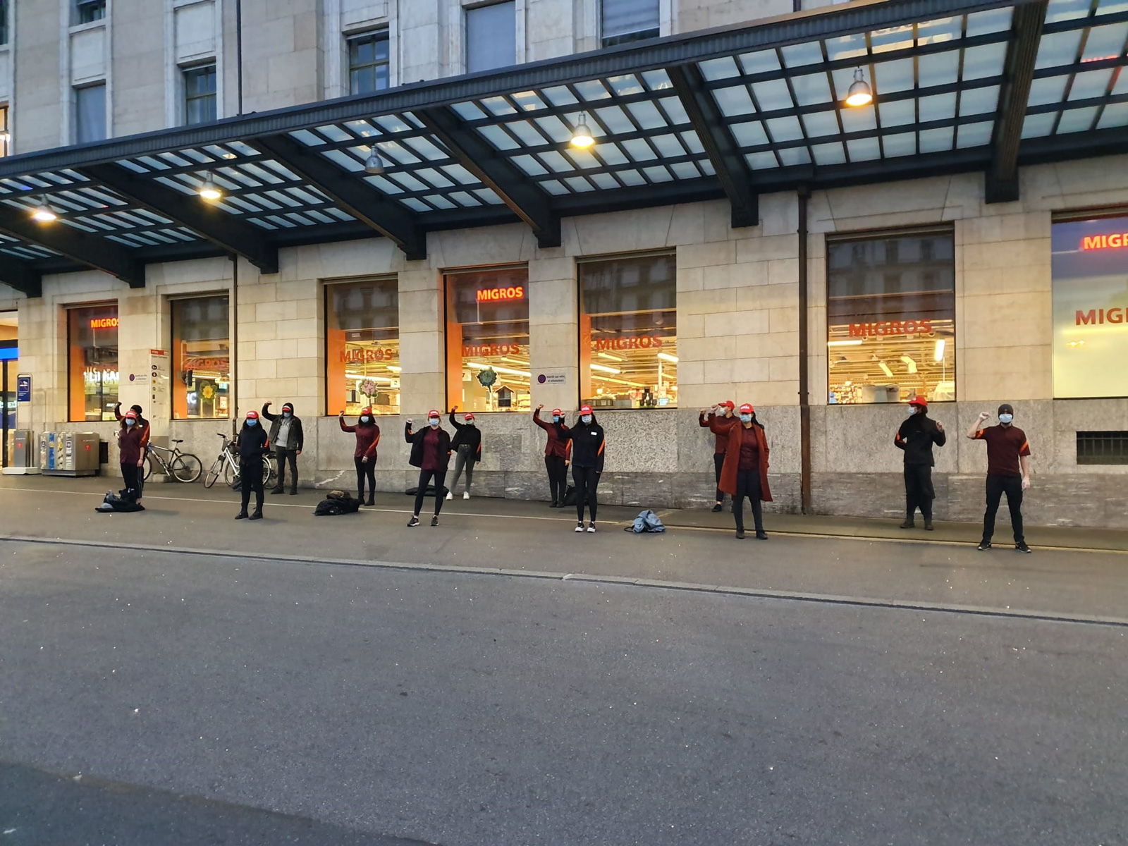 Action du personnel de vente Migros devant la gare de Genève.