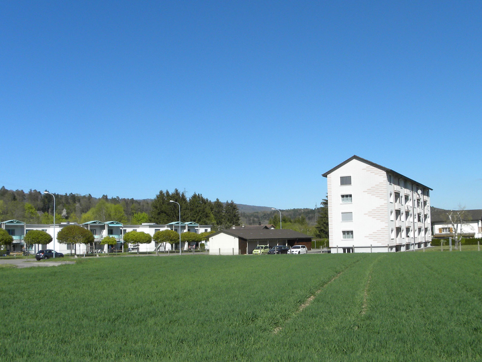 A Bassecourt, la Société coopérative FOMH a réalisé la construction de plusieurs logements. L’immeuble de droite, bâti en 1953, comprend 16 appartements. Sur la gauche, 12 logements ont été érigés en 1993. A l’avant-plan, le terrain constructible de 3853 m2 acquis par la coopérative en 2017.
