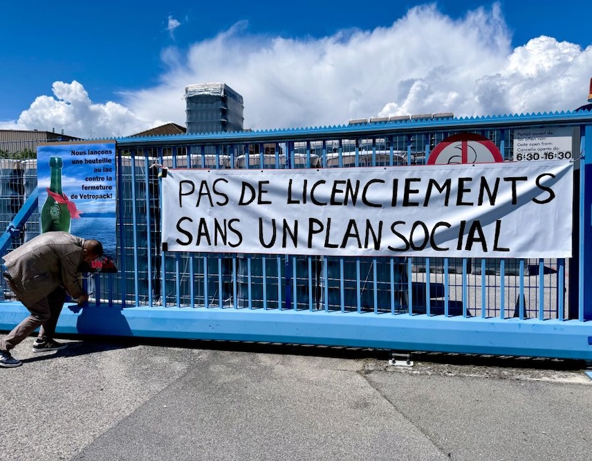 Le vendredi 24 mai, les travailleurs de Vetropack sont en grève. Ils continuent d’exiger la conclusion d’un plan social et le gel des licenciements alors que la direction entend envoyer les lettres de congé à la moitié des quelque 180 collaborateurs du site dans les jours qui viennent.