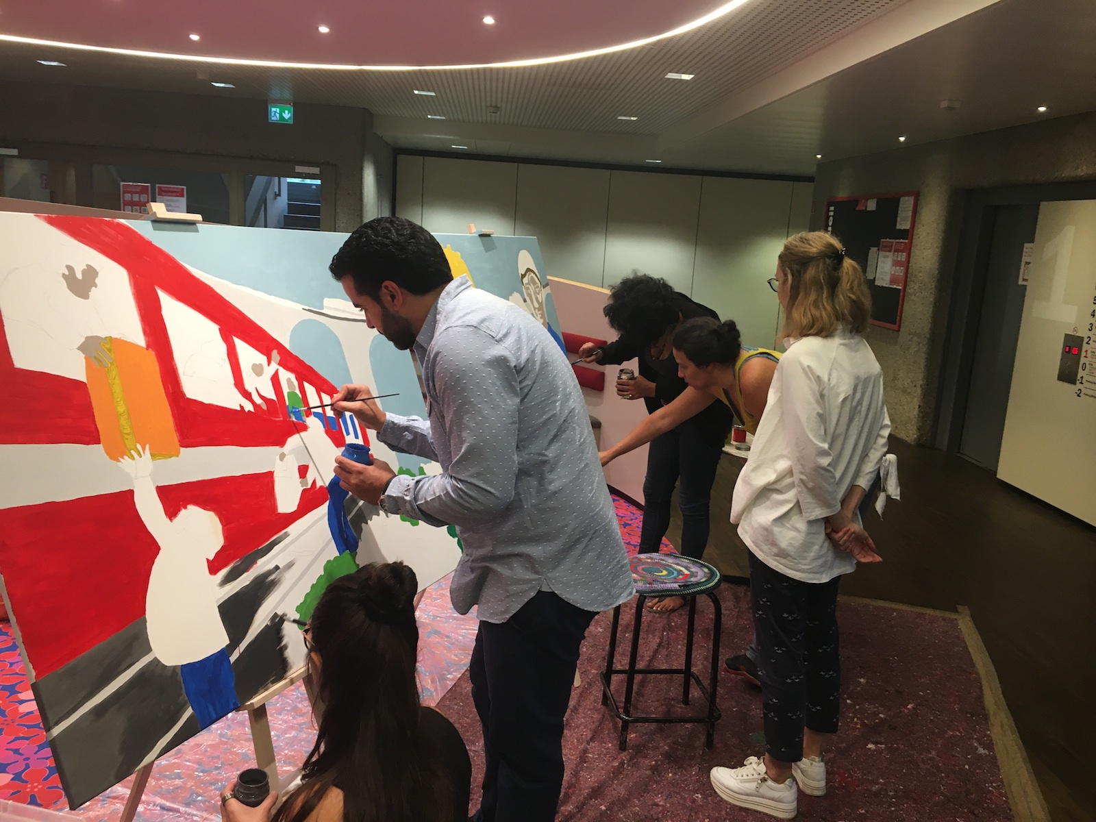Fin août, des associations de migrants se réunissaient à Berne, au siège d’Unia, pour débattre des problèmes soulevés par l’initiative de résiliation de l’UDC et lancer un manifeste. A cette occasion, une fresque murale a été réalisée pour honorer les migrants et la place qu’ils occupent en Suisse.
