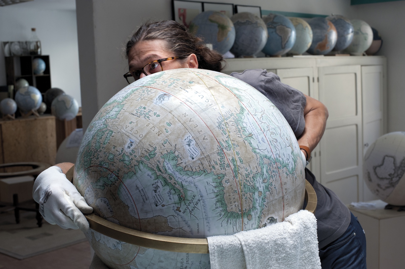 Alain Sauter est l’un des rares à fabriquer et à vendre des globes terrestres en plâtre. Un jour, il a démissionné de la planète Université pour cette exploration d’artisan-géographe dans son atelier à Besançon. Plus qu’un travail, une vocation
