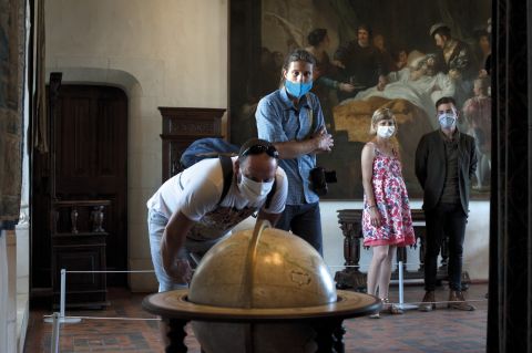 Quand la grille du parc s’ouvre devant le Multivan, le lendemain matin de notre arrivée à Amboise, le moment est solennel. Dans une salle du château, Alain présente le globe à une petite assemblée, directeur, guides et autres membres de l’équipe. L’espace de cet instant, il redevient tout naturellement maître de conférences. Il explique qu’au XVIsiècle, les connaissances qu’on avait du monde étaient issues de récits de voyages, d’explorations, de croyances, de mythes. On savait peu de choses sur l’intérieur des terres, contrairement aux régions côtières, connues grâce à la navigation. Le voici face à des passionnés qui voient le fruit de son travail comme une œuvre d’art. Il a fui la fac, mais le monde académique fait bien partie de sa vie.