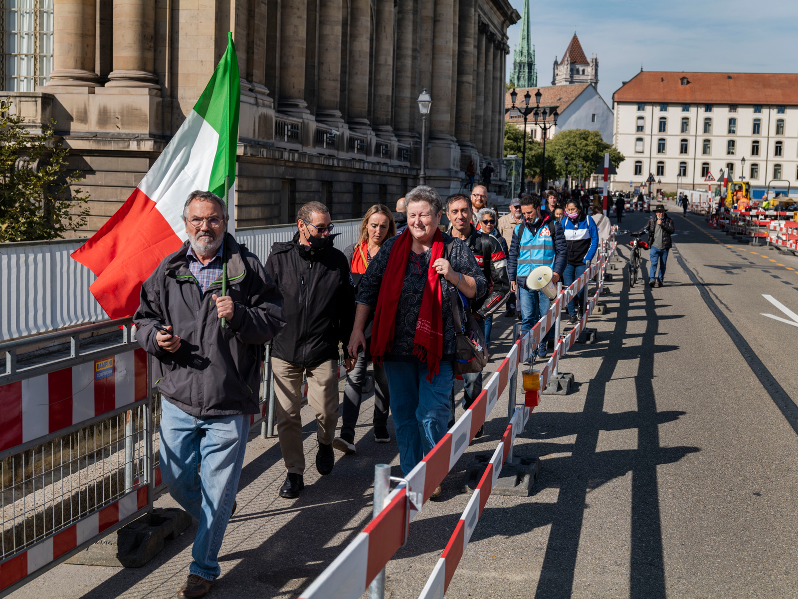 Piquet de solidarité avec un drapeau italien.