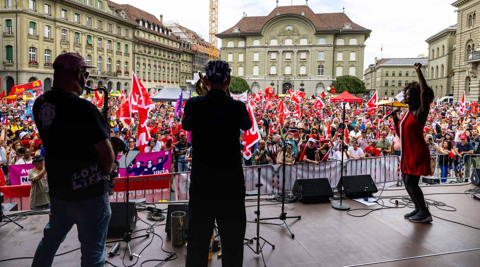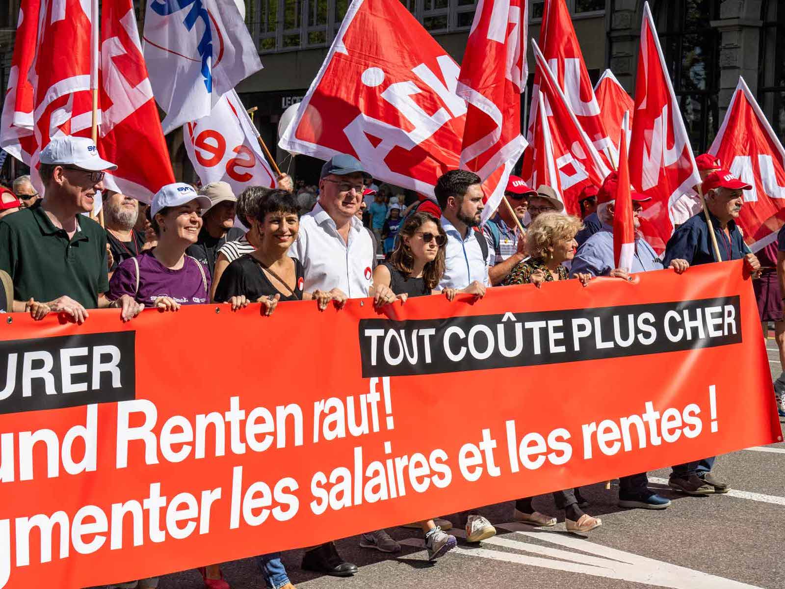 A l’appel de la gauche et des syndicats, des milliers de personnes ont défilé dans les rues de Berne le 16 septembre pour réclamer des hausses des salaires et des rentes ainsi que des mesures pour stopper l’explosion des primes maladie et contenir les loyers. Des salariées et des salariés de tous les secteurs, publics comme privés, étaient présents