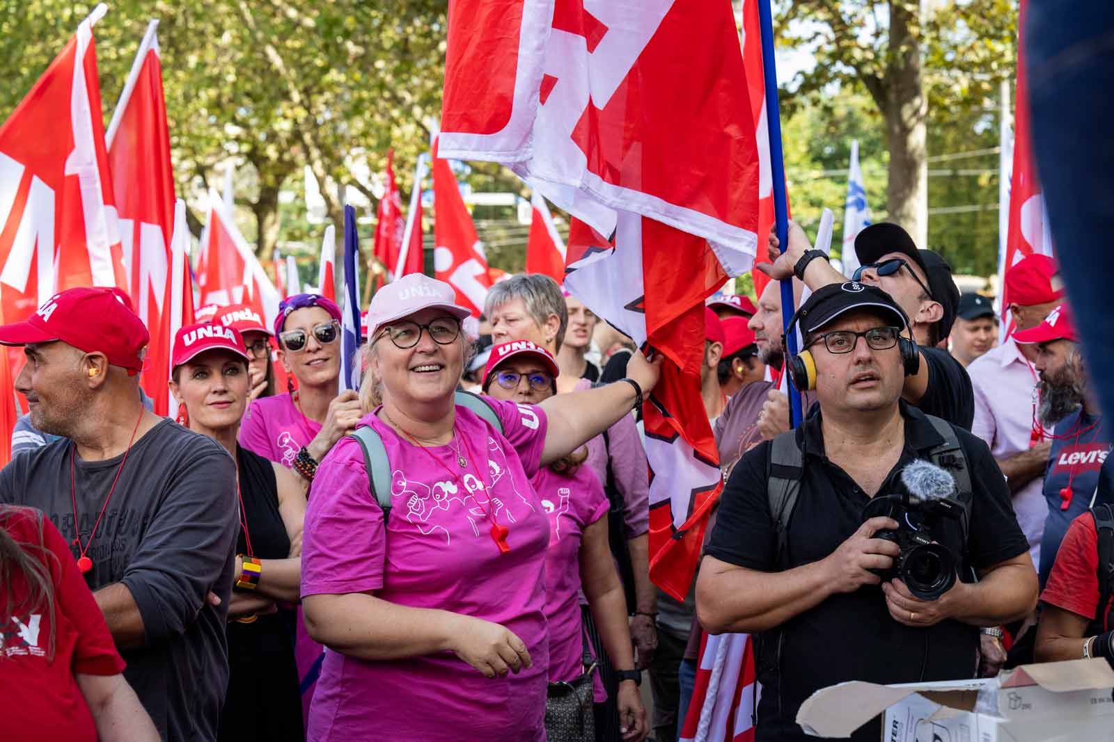 Plusieurs milliers de personnes ont participé à la manifestation dans les rues de Berne le 16 septembre dernier. Un cortège revendicatif, largement coloré des drapeaux d’Unia.