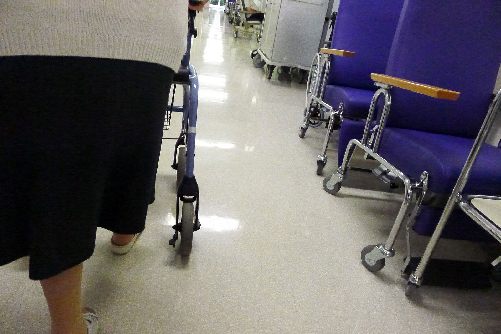 Dans les couloirs d'un hôpital.