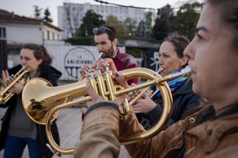 En s’approchant de la friche de Malley, le son des trompettes rivalise avec le trafic automobile de cette fin de journée d’avril. A la croisée de Lausanne, Prilly et Renens, les notes se font plus précises. Ce sont celles de la chanson A bas l’Etat policier, l’un des nombreux morceaux engagés de la Fanfare militante de Lausanne, qui aime bien abréger son nom ainsi: la Fa-mil-le. Tout un symbole.