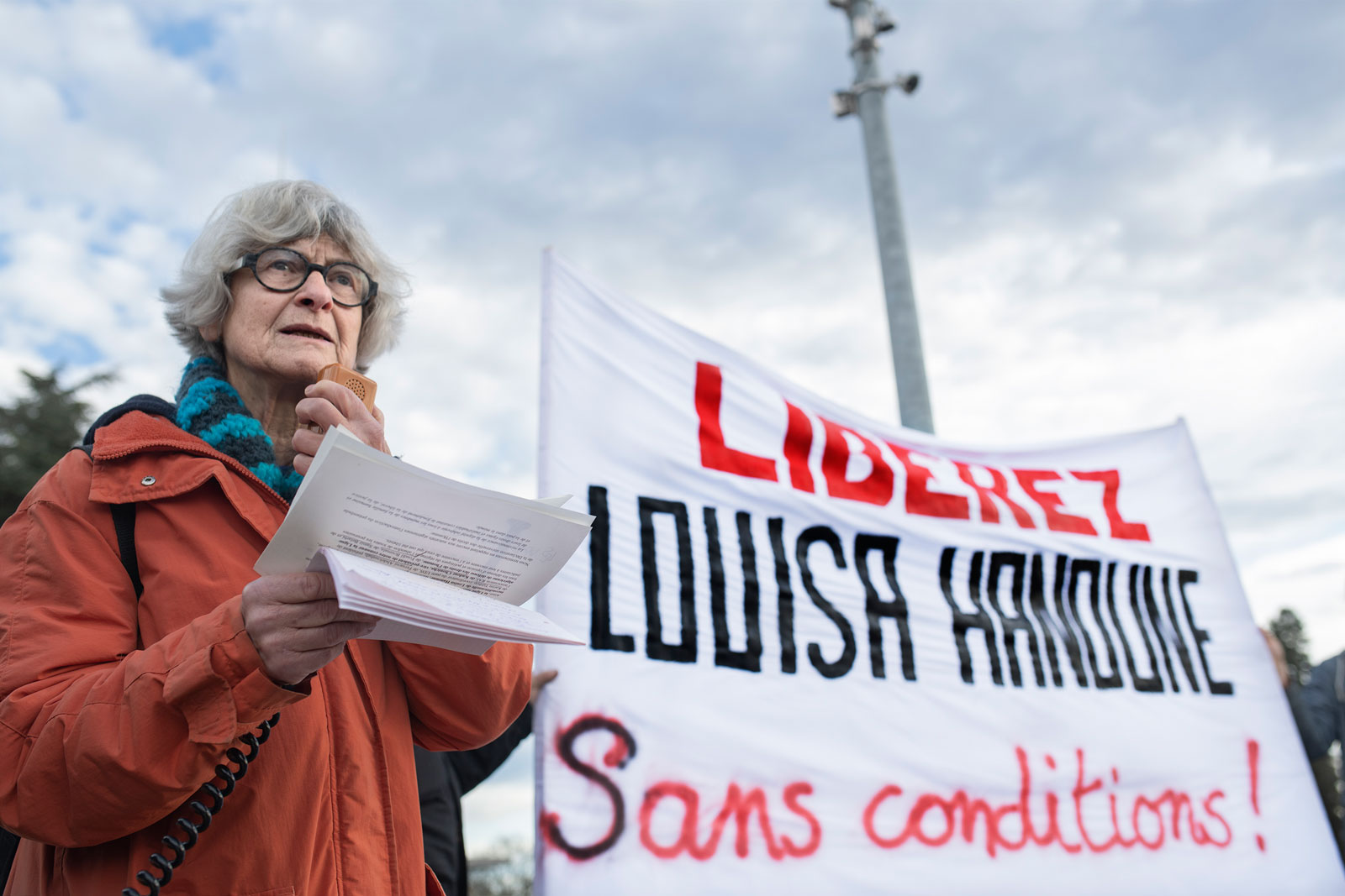 Libération immédiate et inconditionnelle de Louisa Hanoune et de tous les prisonniers politiques et d’opinion détenus en Algérie! C’est l’exigence exprimée par de nombreux militants et représentants d’organisations syndicales, politiques et des droits humains réunis en urgence samedi dernier sur la place des Nations à Genève. Comme l’a souligné Vincent Leggiero, du Comité suisse pour la libération de Louisa Hanoune, l’état de santé de la secrétaire générale du Parti des travailleurs algérien, détenue depuis neuf mois, se dégrade de jour en jour. «Elle est la première dirigeante politique emprisonnée depuis le début de la révolution en Algérie. Nous sommes ici pour que le régime algérien nous entende et la libère, comme tous les détenus.»