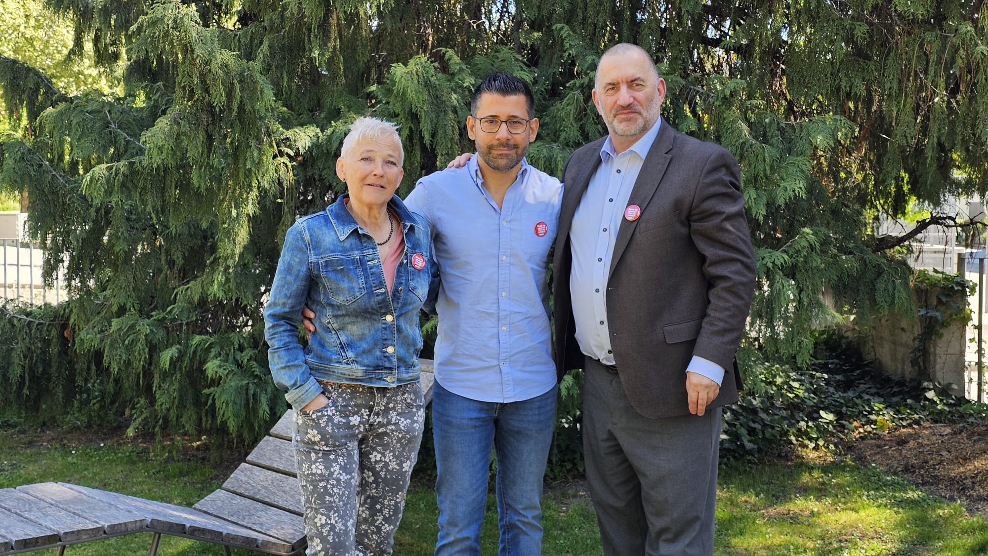 Pasqualino Gallicchio, au centre, avec à ses côtés, Blaise Carron, secrétaire régional d’Unia Valais, et Doris Schmidhalter-Näfen, à qui il succède.