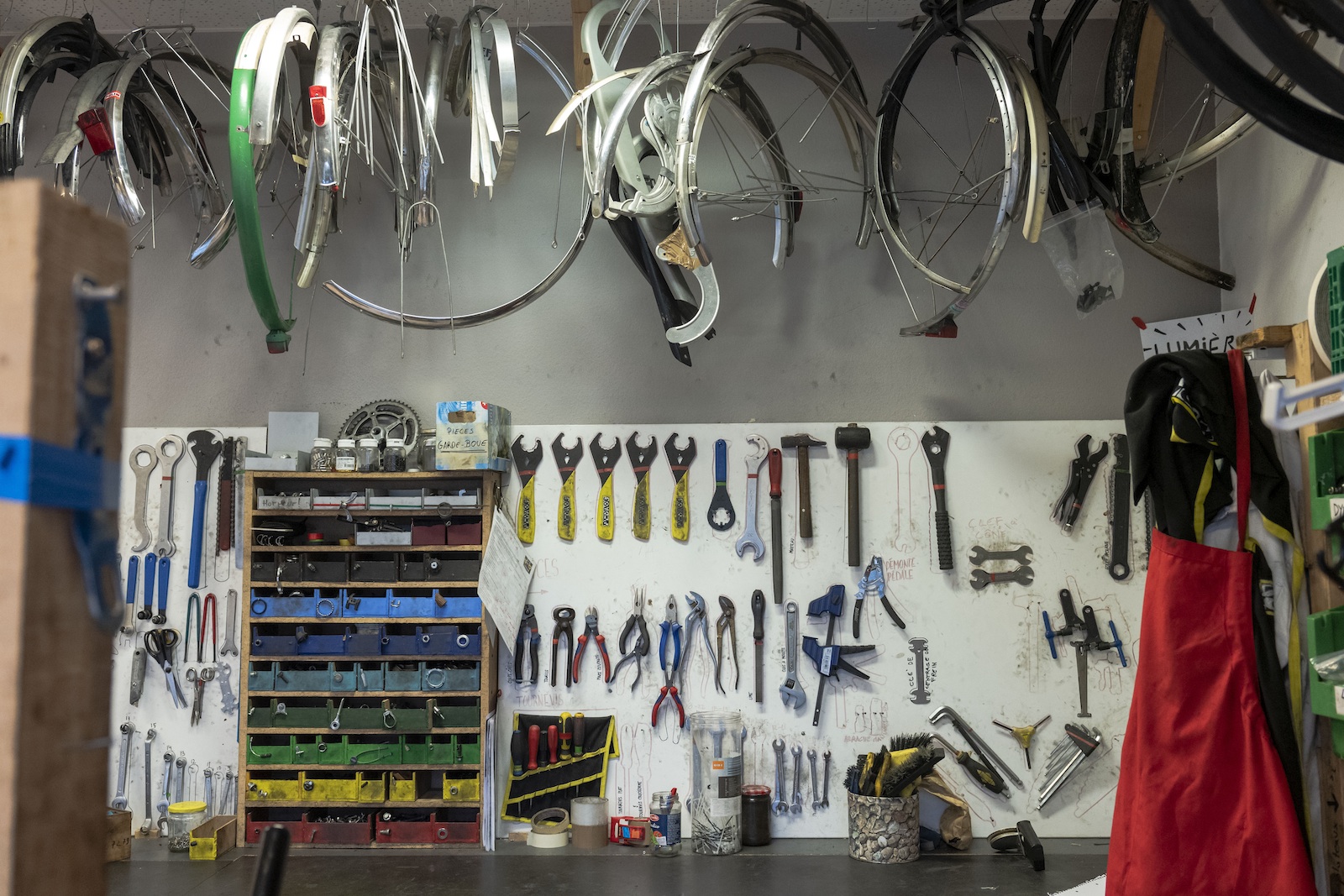 Parmi les nombreux services offerts par l’association, figurent aussi les cours de mécanique. «On en propose deux différents: ceux de mécanique complet tous les lundis et les “multi-tool”, un samedi par mois. Le premier a plus de succès, car on peut s’inscrire en fonction de son niveau et, à la différence du “multi-tool”, on doit venir régulièrement», commente Camille, qui indique que, afin d’économiser ses forces, le comité a décidé d’engager un professionnel pour donner ces cours. «Les demandes ne manquent pas. Mais on a tous un travail à côté et c’est important de s’alléger afin de ne pas s’essouffler!» En plus d’un atelier de réparation les mercredis de 16h à 20h, Recyclo se déplace ponctuellement dans les communes, les entreprises ou lors d’événements comme le Festival de la Terre, pour tenir des stands de mécanique vélo. «On profite de ces manifestations pour faire notre promotion.» Récemment, Ricardo, une plateforme de revente en ligne, a proposé à Recyclo de leur financer un vélo cargo. Un véhicule dérivé de la bicyclette qu’on emploie pour transporter des charges plus importantes que sur un vélo classique et qui serait, dans le cas de l’association, destiné à organiser des ateliers ambulants. «Aménager un tel vélo nous permettrait d’être plus mobile et notre logistique serait simplifiée. De plus, on pourrait entrer directement en contact avec la population et sensibiliser ainsi les gens à la pratique du vélo en ville.»