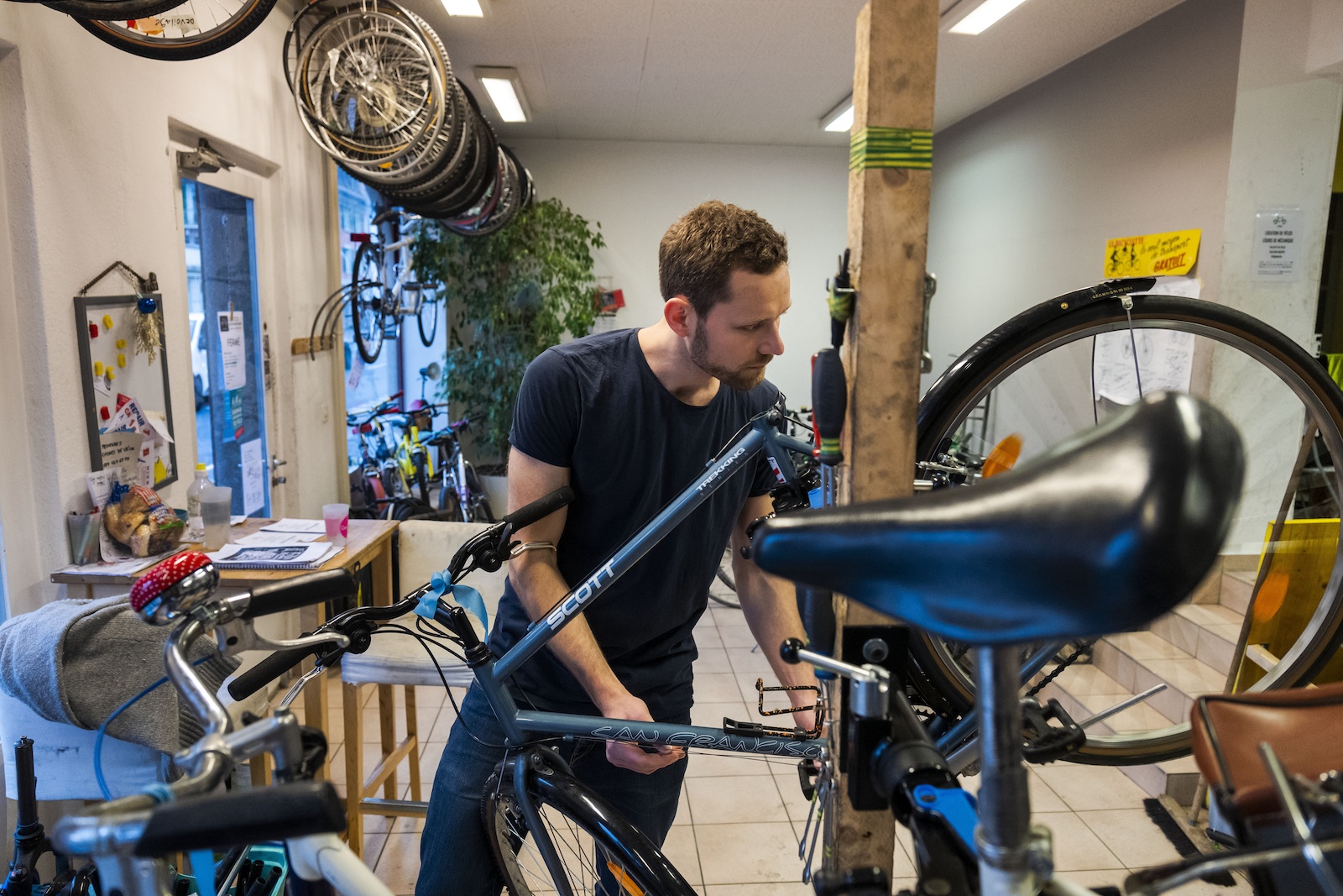 Francesco, 37 ans, bénévole depuis les débuts de l’association, et ingénieur aux Services industriels de la ville de Lausanne, souligne: «On ne se place pas comme des concurrents aux magasins de vélos mais plutôt comme des facilitateurs. On offre une solution intermédiaire à nos clients en fonction de leurs besoins. Ils essaient un vélo pendant quelque temps puis, s’ils sont conquis, en achète un dans un magasin spécialisé.» L’homme ajoute, un sourire aux lèvres: «J’aime réparer ces engins. Ça me vide la tête et j’en tire une immense satisfaction et de la reconnaissance.» Plus loin, Juliano, 23 ans, volontaire depuis quelques mois chez Recyclo, explique, tout en astiquant les disques d’un vélo, qu’il a fini son bachelor en mécanique l’année dernière à l’EPFL. Il a alors pris une année sabbatique pour faire son service civil. «J’avais plus de temps pour moi et je me suis demandé ce que j’aimais vraiment dans la vie. J’ai vite pensé au vélo et, comme je ne connaissais pas bien la mécanique, j’ai cherché un endroit où me former.» Du cambouis plein les mains, il raconte encore que cette expérience lui a permis de développer ses capacités mécaniques mais aussi d’élargir son cercle de connaissances.