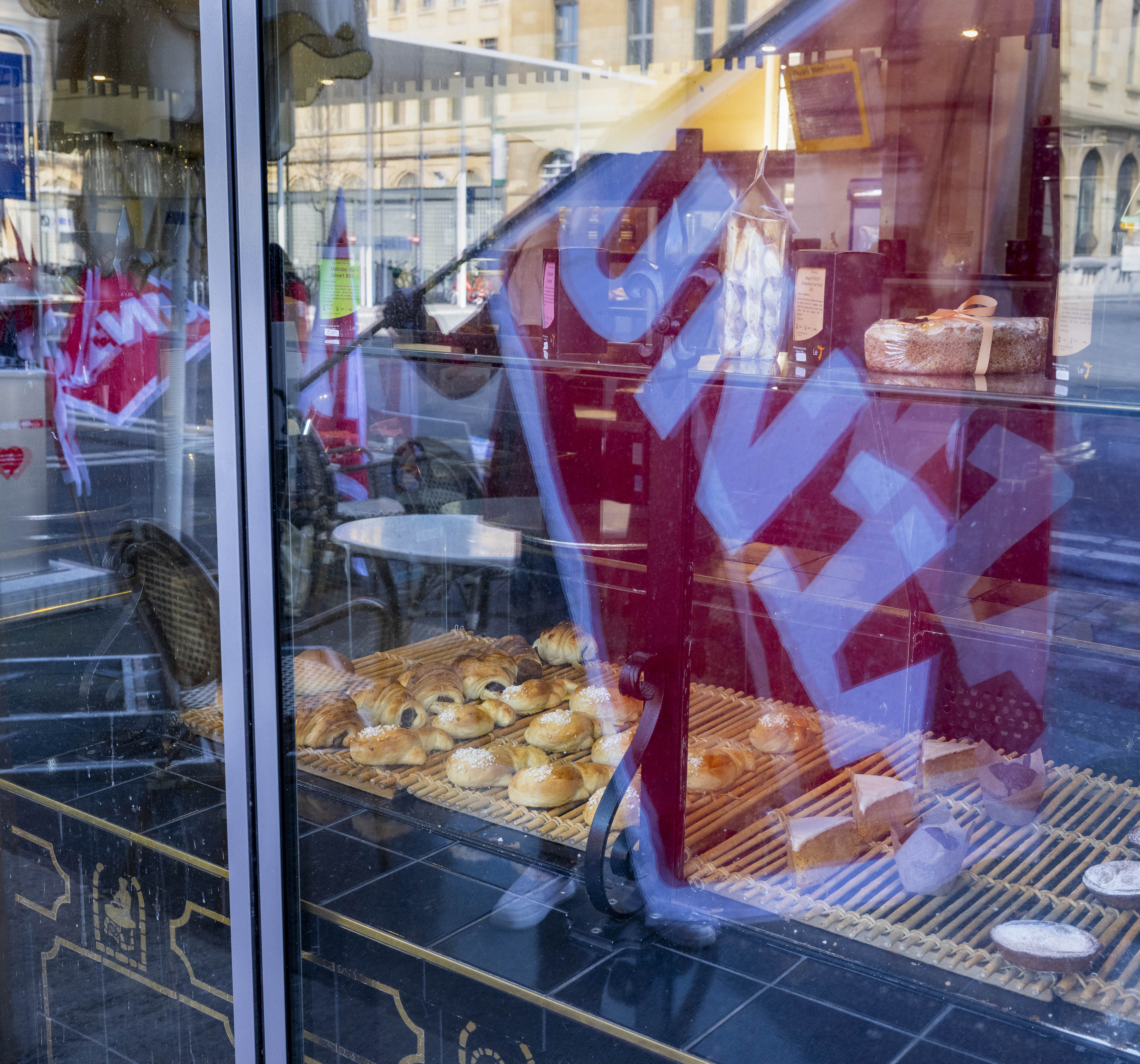 Devant la succursale de la boulangerie Le Fournil de Pierre, à La Chaux-de-Fonds, le 7 mars, Unia a dénoncé les pratiques managériales de la direction. Le syndicat demande le respect de la CCT, du droit du travail et du partenariat social.