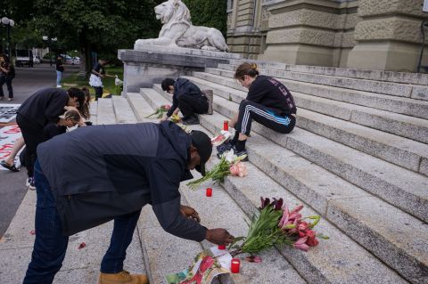 La rassemblement en hommage à Michael Kenechukwu Ekemezie qui s'est tenu le 3 juin devant le tribunal de Montbenon.