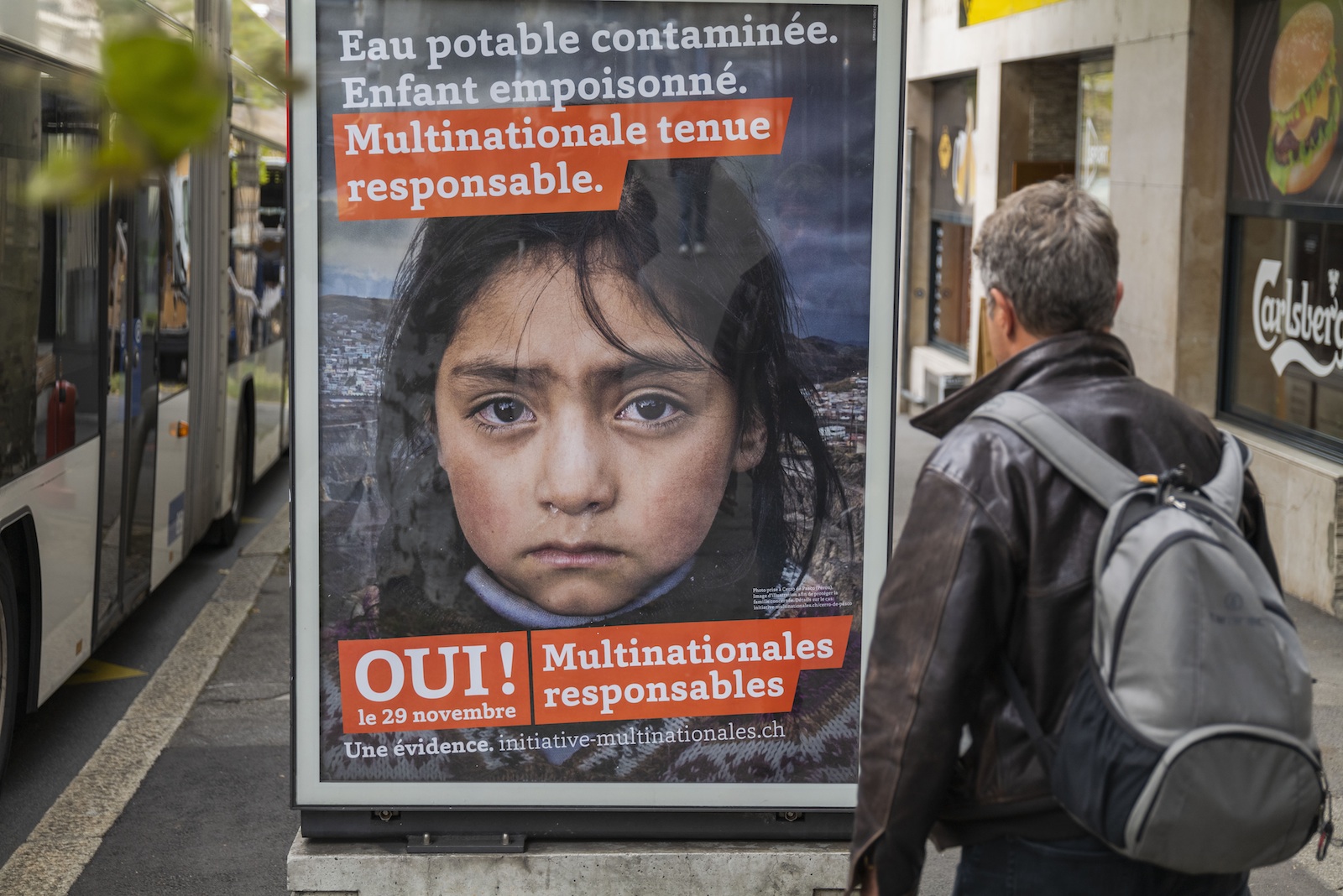 Affiche en faveur de l'initiative pour des multinationales responsables lors de la votation de novembre 2020.