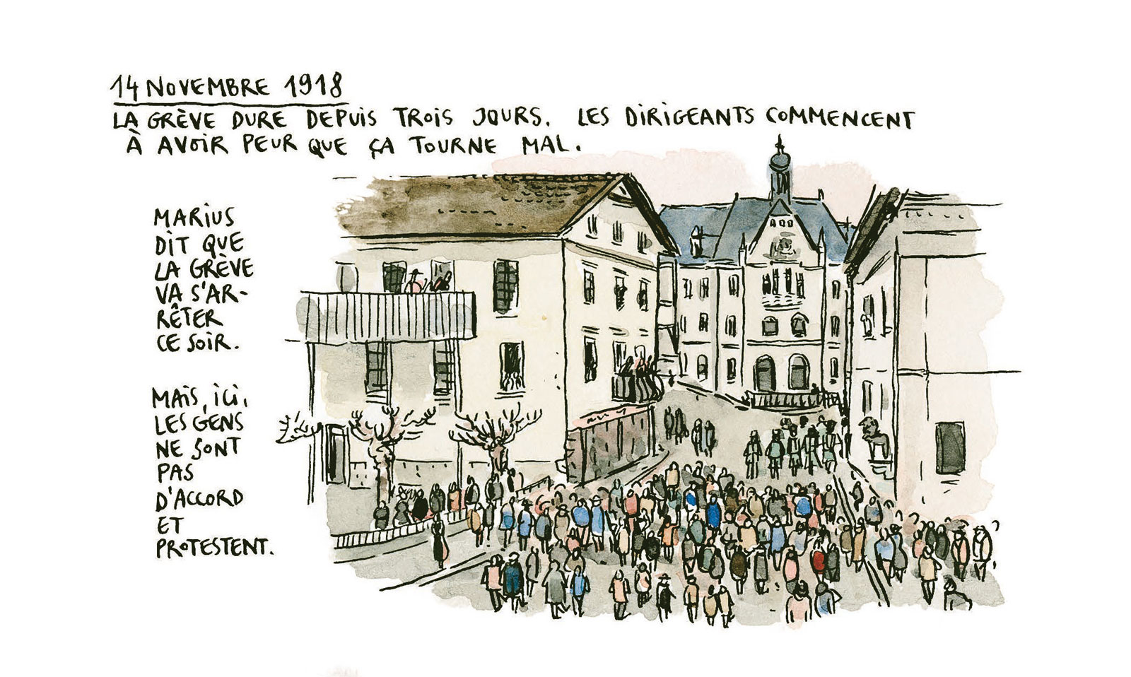 Un cliché marque parfois l’histoire helvétique. Il en véhicule une teneur ennuyeuse et dénuée de toute convulsion. Au pays du compromis, les comportements guidés par la raison s’accorderaient les uns aux autres, en se répartissant harmonieusement les fruits de la prospérité. La Suisse ferait ainsi figure de Sonderfall, loin des passions révolutionnaires de ses voisins. Eric Burnand, ancien journaliste à la RTS, et Fanny Vaucher, autrice de bandes dessinées, ont choisi de cultiver un autre regard sur le passé, une approche différente, à plusieurs titres. Avant tout, leur ouvrage met pertinemment en évidence les lignes de fracture au sein de la société. Au cours du XXe siècle, les oppositions se révèlent multiples. La Suisse est, dans la réalité, bien souvent divisée. Le scénario de l’ouvrage comprend, à ses débuts, une scène relativement classique: un repas de famille avec des discussions animées au niveau politique. A l’occasion des fiançailles de la jeune Emma, un oncle ferraille avec son neveu à propos des grèves zurichoises ayant éclaté dans le secteur bancaire. D’un côté, la peur des «Rouges» et d’une propagation révolutionnaire amplifiée par les événements russes d’Octobre 1917; de l’autre, la flamme du militantisme. Par la suite, les antagonismes ne cesseront de se succéder au rythme du récit. Lors de la grève générale de 1918, ils atteignent leur paroxysme lorsque l’armée tire sur les manifestants. Différents niveaux d’interprétation du réel sont mobilisés, l’attention du lecteur passant du collectif au biographique. La figure d’Ernst Nobs – l’un des meneurs du mouvement ouvrier – contraste, à ce moment, avec celle d’Henri Guisan, protagoniste de la répression.