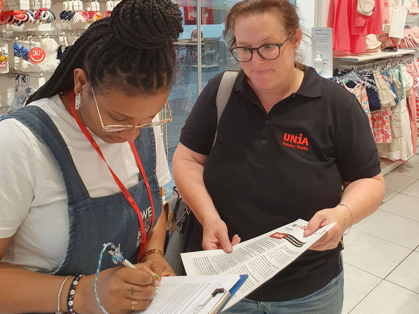 La récolte de signatures contre l’extension des horaires d’ouverture des magasins en Valais est très bien accueillie par le personnel de vente et la population.