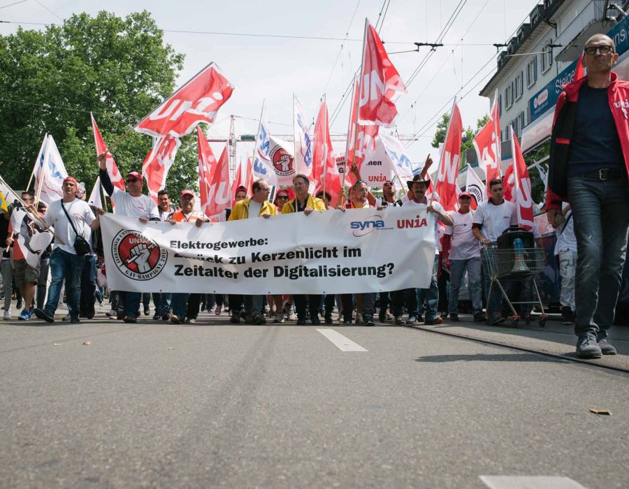 Venus de toute la Suisse, quelque 400 travailleurs de l’installation électrique ont défilé le 19 mai à Zurich