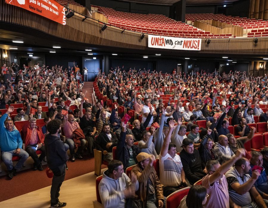 Plus de 900 maçons du canton de Vaud ont fait le point sur les négociations en vue d’améliorer leurs conditions de travail. Face aux attaques patronales, ils ont voté en faveur de deux jours de grève, comme leurs homologues à Genève et à Neuchâtel