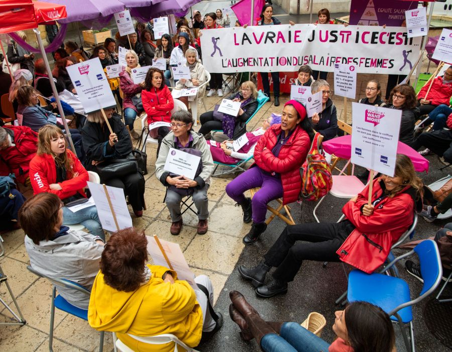 Le Collectif neuchâtelois pour la grève des femmes a organisé une action symbolique pour dénoncer la persistance des discriminations salariales. Des démarches similaires ont aussi été menées dans d’autres villes du pays