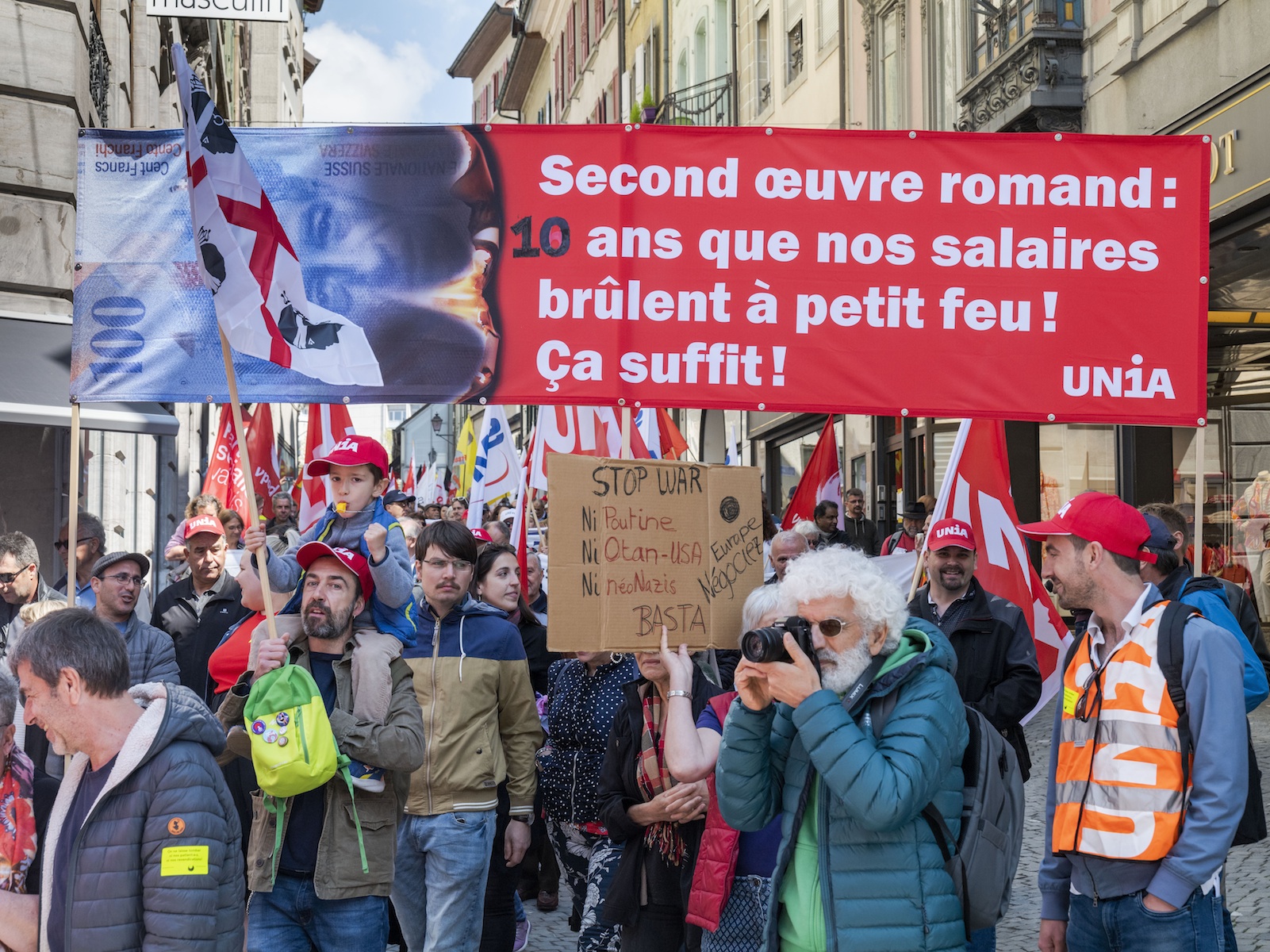 Les travailleurs du second œuvre sont appelés à participer massivement l’assemblée générale du secteur suivie du cortège du 1er Mai. Photo: 1er Mai 2022 à Lausanne.