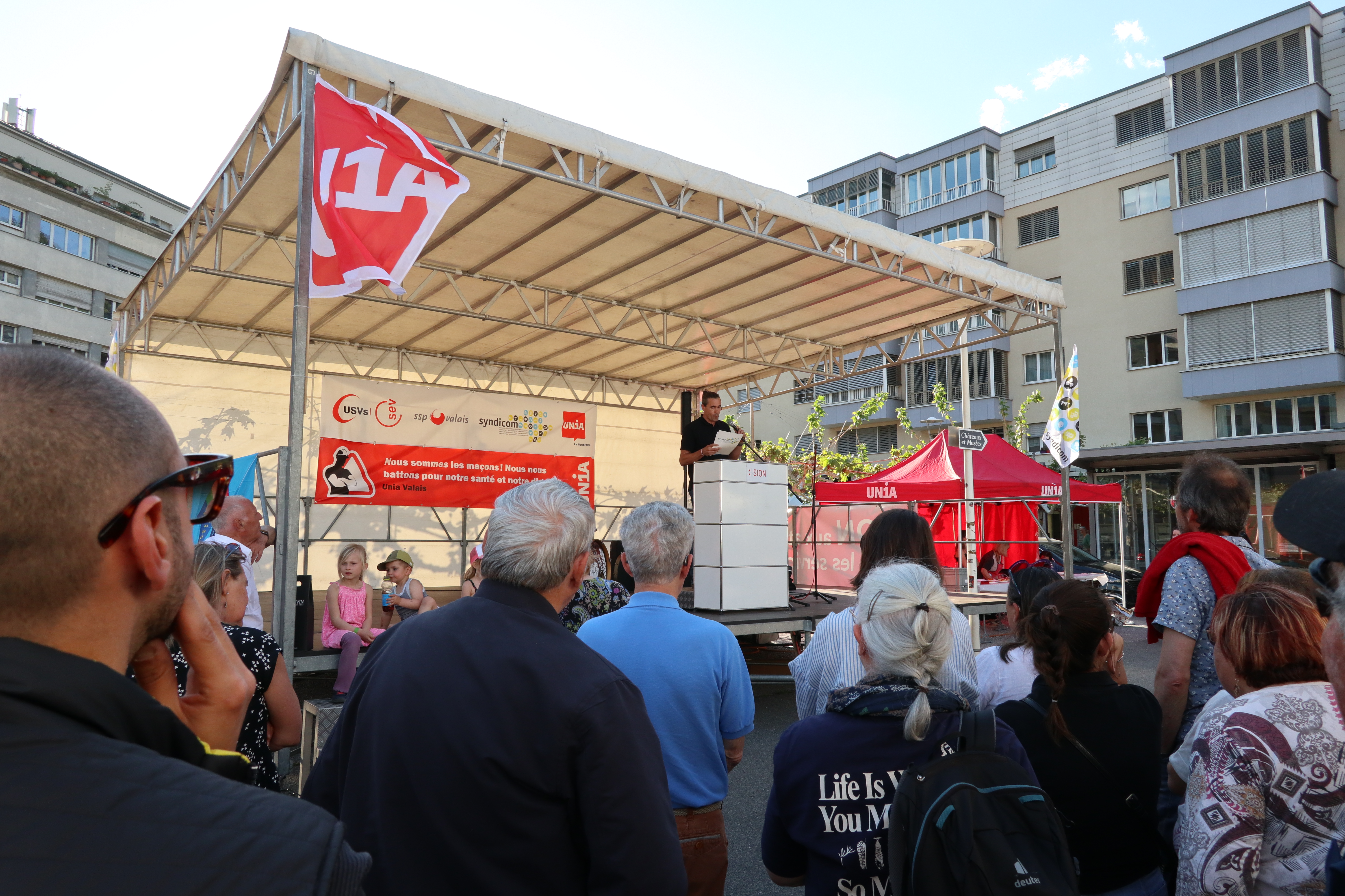 Autre personnalité politique présente, la députée socialiste Patricia Constantin, récemment élue présidente du Grand Conseil valaisan, a aussi parlé du contexte international: «Certains voudraient qu’on accuse l’autre, l’étranger, le voisin, plutôt que de s’attaquer aux véritables causes de nos souffrances. C’est par la solidarité que nous gagnerons les batailles à venir pour un emploi digne, pour l’égalité salariale, pour un monde meilleur.» L'Union syndicale valaisanne, par la voix de sa présidente, Francine Zufferey, également secrétaire syndicale chez Unia, a enfin lancé un appel à une manifestation cantonale le 11 octobre, à Sion, pour réclamer une hausse des salaires, un partage des richesses et une société plus juste. La fête s’est poursuivie dans la soirée avec musique et spécialités culinaires italiennes.