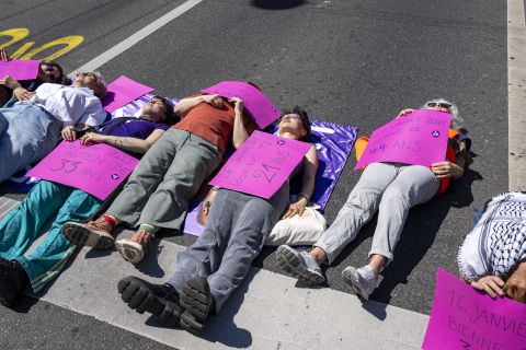 Le 1er Mai interjuassien à Moutier a réuni plus de 300 personnes. Les revendications des femmes pour la justice et l'égalité ont été au cœur de la manifestation. En préambule de la partie oratoire, une minute de silence a été observée en mémoire de Christiane Brunner, à l'incitation du président de l'Union syndicale jurassienne, Dominique Hausser, lequel s'est par ailleurs élevé contre la montée du fascisme prospérant sur les dérives de l'ultralibéralisme. Pour sa part Lilia Benyezza, de la Commission migration d'Unia, a déploré le sort trop souvent réservé aux migrants dans notre pays. Sans eux, «par de routes, pas d'hôpitaux, pas d'écoles, pas de tunnels». A ses yeux, la politique migratoire en Suisse «est un peu comme une raclette-party: t'as la fumée mais il n'y a pas la chaleur.» Au terme de la manifestation, les membres du Collectif Féministe Jura ont provoqué une vive émotion en incarnant de façon spectaculaire les 14 féminicides survenus en Suisse depuis le début de l'année (le double qu'en 2024 !) Elles se sont écroulées une à une sur le sol à l'évocation des noms et des âges de chaque victime énoncés par la présidente du Collectif, Sylvia di Luzio.