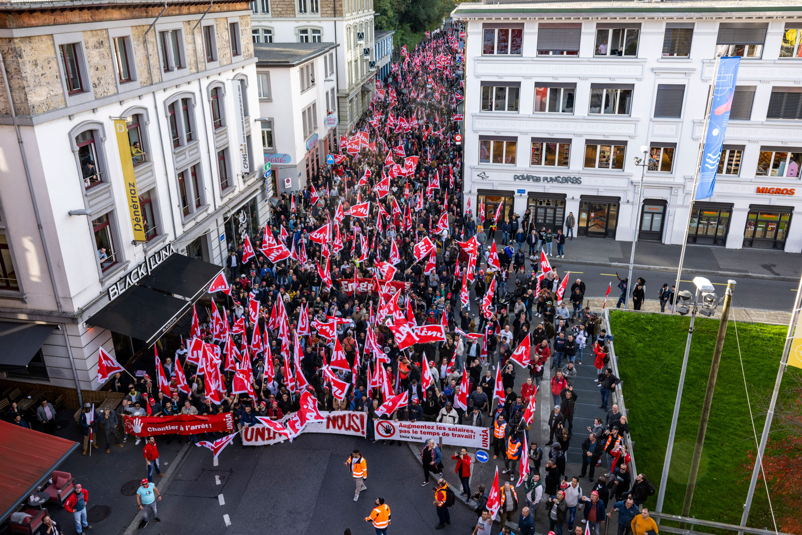 Dans la capitale vaudoise, les travailleurs de la construction se sont réunis à Ouchy avant de gagner la place de la Riponne au centre-ville.