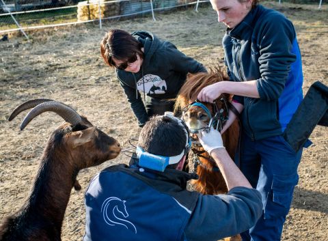 Dans le parc attenant peuplé de chèvres, de moutons, de poneys et de deux ânes, Cascabelle, une belle biquette au pelage beige, a sauté sur une table et observe de son promontoire, sûre de sa prestance, ses acolytes. A côté, la mangeoire regorgeant de foin retient plusieurs de ses congénères. Marchant au milieu de ses protégés, Wendy Pichard évoque le triste passé de plusieurs d’entre eux, la nécessité de recréer des liens de confiance, alors qu’une chèvre, espiègle, fouine dans une poche de sa veste, alléchée par l’idée d’un extra... Regain d’animation à l’arrivée de deux vétérinaires. Le duo est venu soigner un poney victime, dans son ancienne ferme, de négligence. A la vue du licol et des soigneurs qu’il a reconnus, le petit cheval malade se lance dans un galop effréné pour tenter de leur échapper. Et entraîne dans sa course d’autres occupants dans une joyeuse débandade. Il faudra toute la patience et la douceur de l’équipe pour l’intercepter.